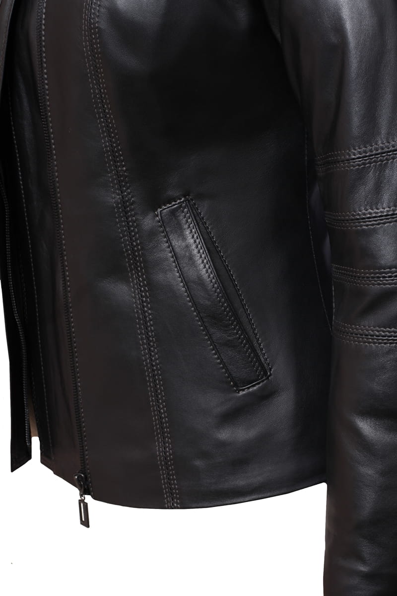 Model AGT450 firmy DORJAN to lekka, zapinana asymetrycznie na zamek kurtka skórzana damska w klasycznym, czarnym kolorze. Wysoki kołnierz doskonale chroni od wiatru i chłodu, a taliowany fason podkreśla kobiecą sylwetkę. Charakteru całości dopełniają ozdobne przeszycia na rękawach. To klasyczny model, który świetnie sprawdzi się w okresach przejściowych, wiosną i jesienią.