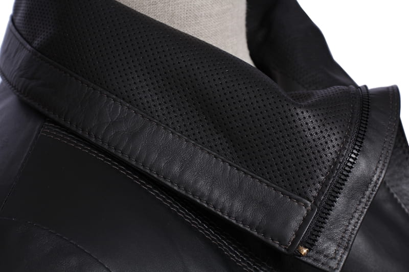 - wysoki kołnierz wykończony skórą perforowaną
