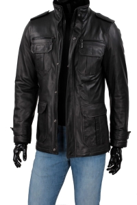 ALDZ450 - Czarna kurtka skórzana męska z lekkim ociepleniem DORJAN