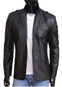 ALX450_2 - Casualowa marynarka skórzana męska z pagonami DORJAN