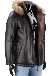 Model AMDO450 to elegancka kurtka skórzana męska klasy PREMIUM, wykonana z wysokogatunkowej naturalnej skóry owczej w dwóch kolorach. Ocieplenie wykonane technologią Thermo Fleece zapewnia doskonałą izolację termiczną, a jednocześnie lekkość, wygodę i swobodę ruchów. Wysoka stójka połączona z kapturem (możliwość odpięcia kaptura), który dodatkowo wykończyliśmy naturalnym futrem z jenota (opcja odpięcia samego futerka), daje świetną osłonę przed wiatrem i chłodem. Najwyższej jakości skóra naturalna, wykonanie zgodne z najlepszymi standardami klasy premium oraz odważna i wyrazista stylistyka sprawiają, że nikt nie przejdzie obok Ciebie obojętnie!