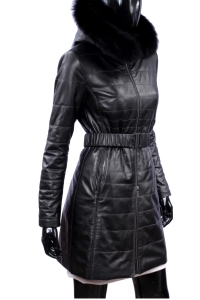 ANG450_3 - ocieplany płaszcz skórzany pikowany damski z lisem DORJAN