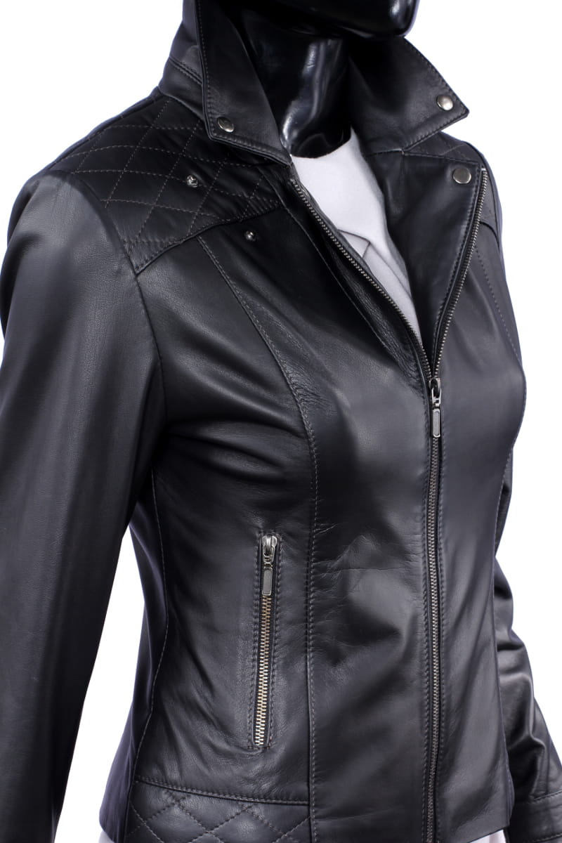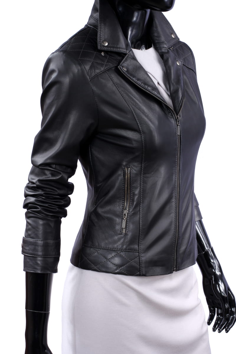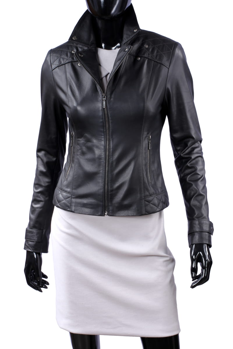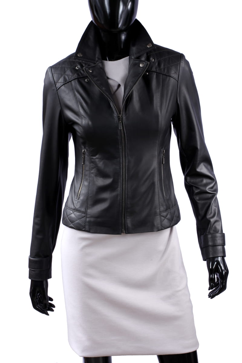 ANI450 - czarna kurtka skórzana damska w stylu ramoneski DORJAN