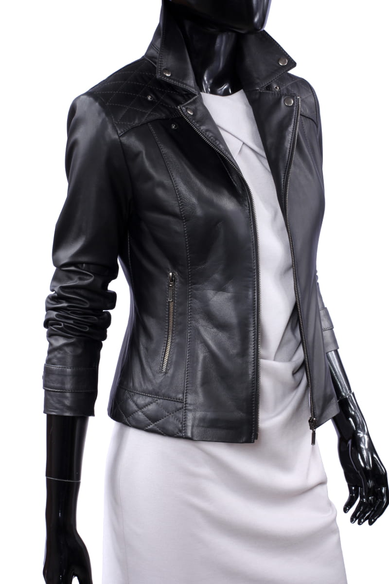 Model ANI450 firmy DORJAN to casualowa kurtka skórzana damska, która krojem i charakterem nawiązuje do ramoneski skórzanej damskiej. Efektowny kołnierz zapinany na napy, przeszycia na ramionach, karczku oraz na bokach kurtki wzorowane są na rozwiązaniach, znanych właśnie z ramonesek. Największa różnica to zachowanie symetrii i centralny metalowy zamek, w miejsce umieszczonego asymetrycznie. Dzięki takiemu rozwiązaniu, kurtka jest doskonała zarówno do pracy, jak i na spotkania ze znajomymi, innymi słowy wszędzie tam, gdzie wskazany jest nieformalny styl z nutką elegancji.