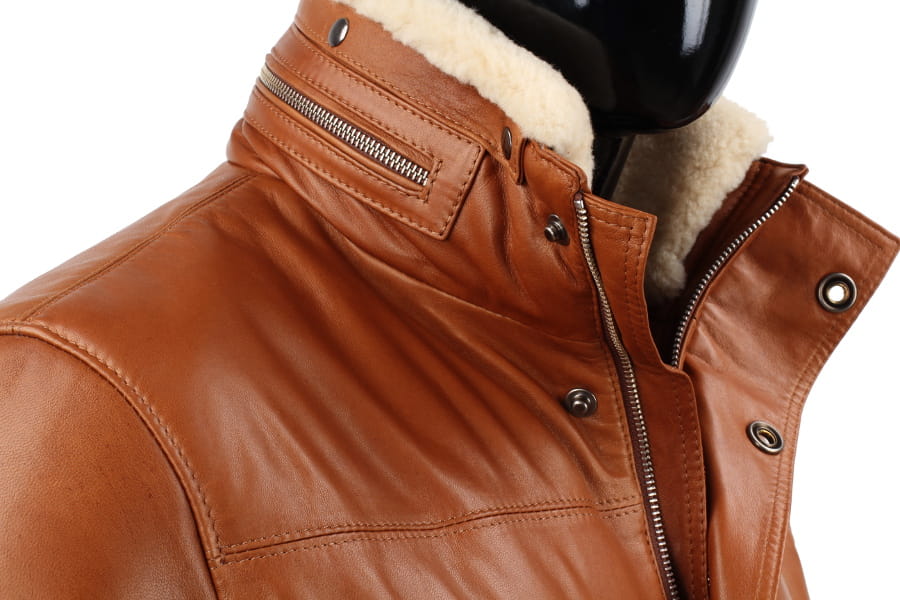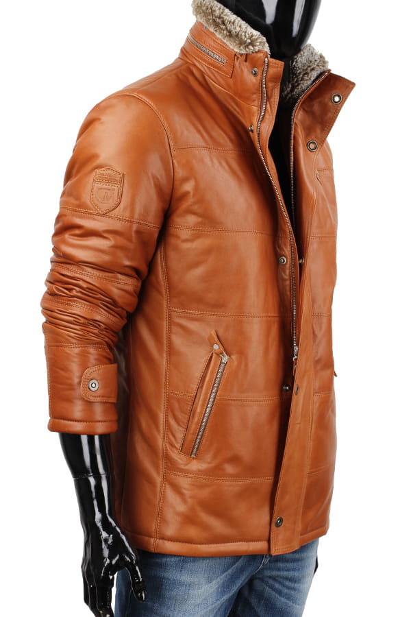 - kurtka zapinana na zamek kryty skórzaną listwą zapinaną na napy