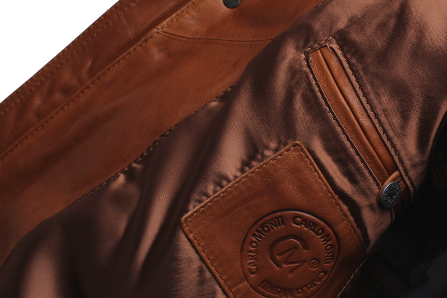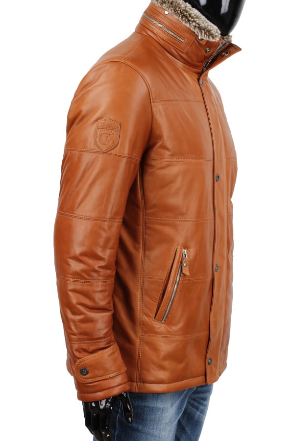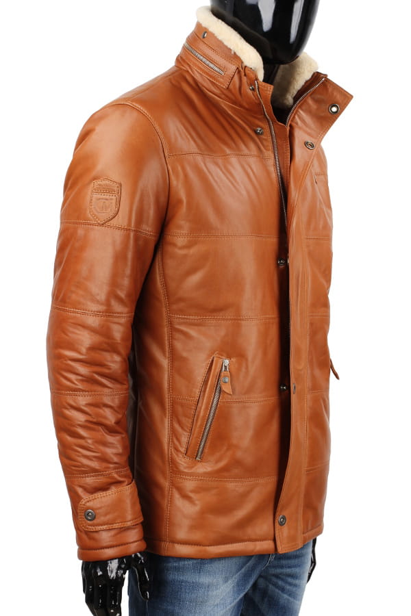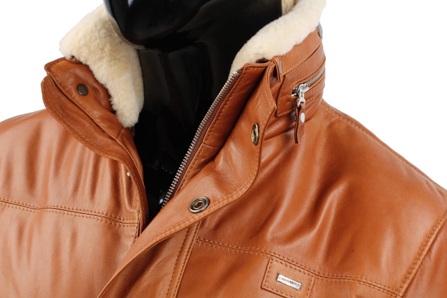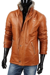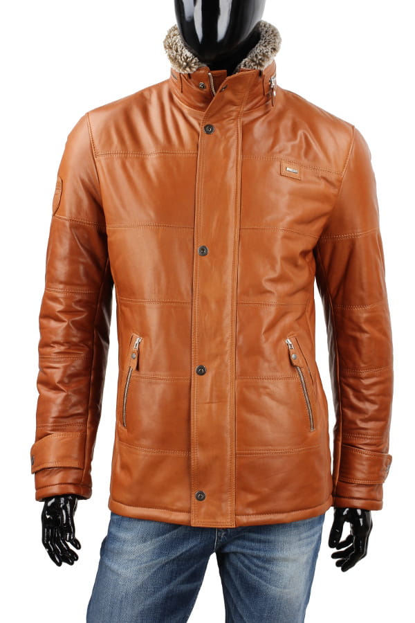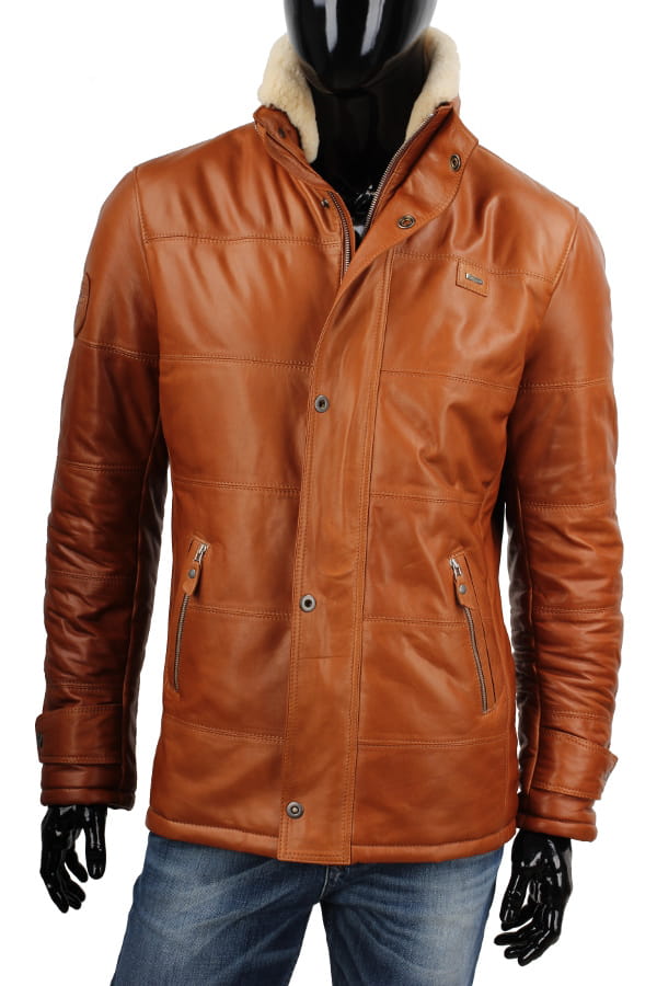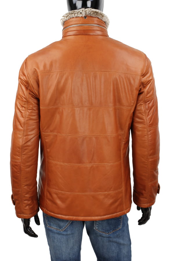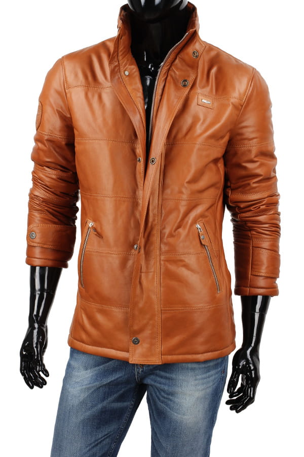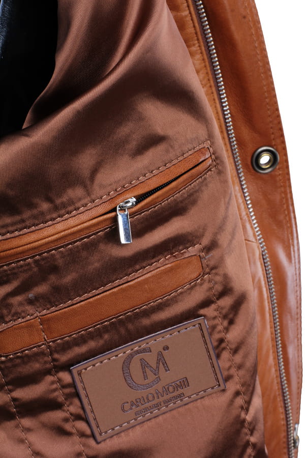 BRU088 - Kurtka skórzana męska w modnym camelowym kolorze DORJAN