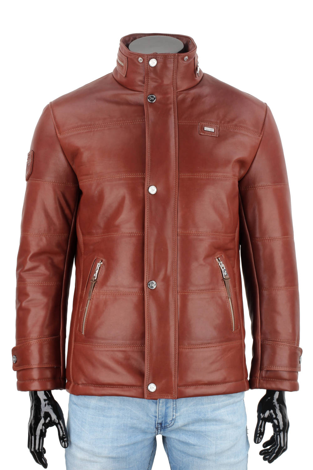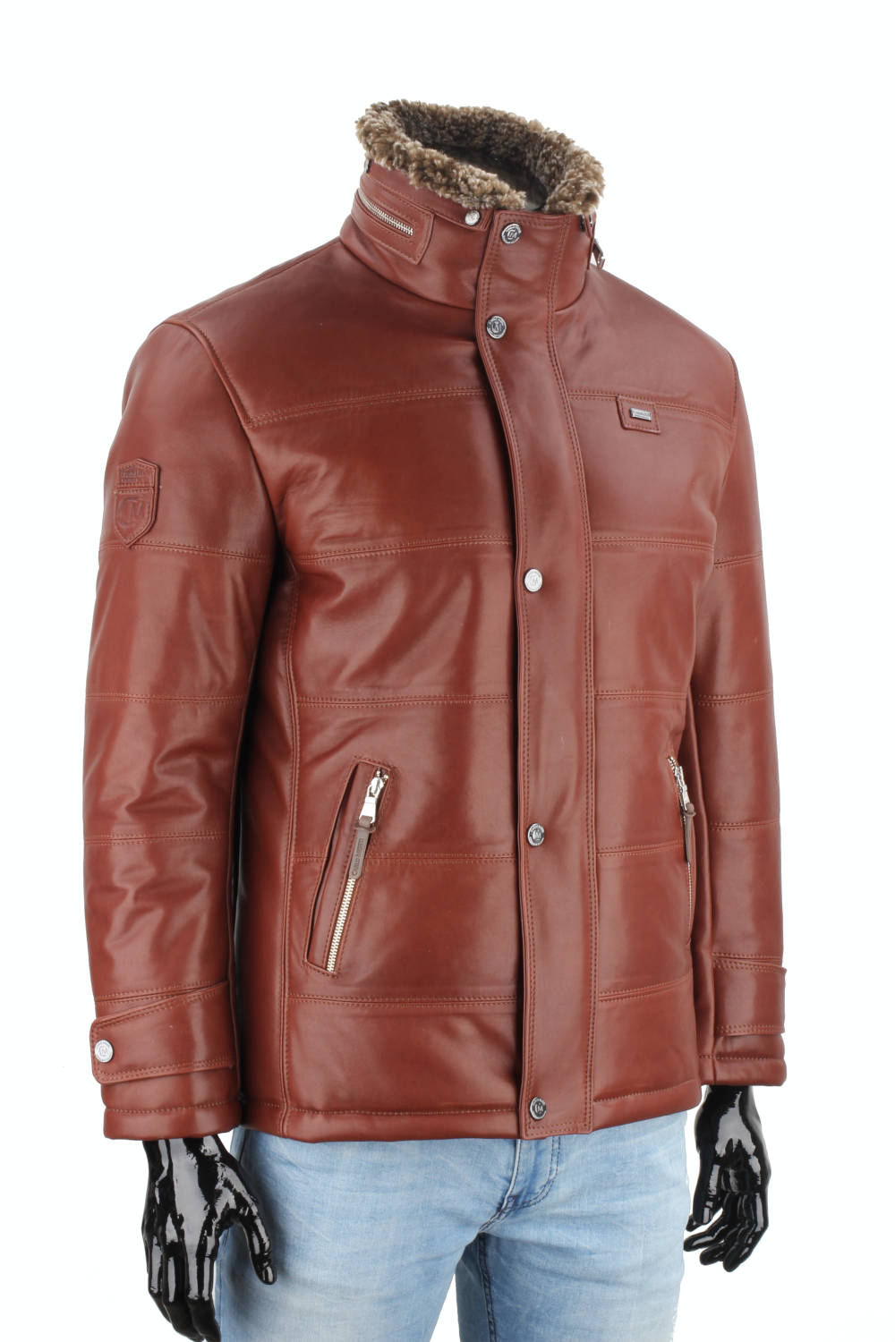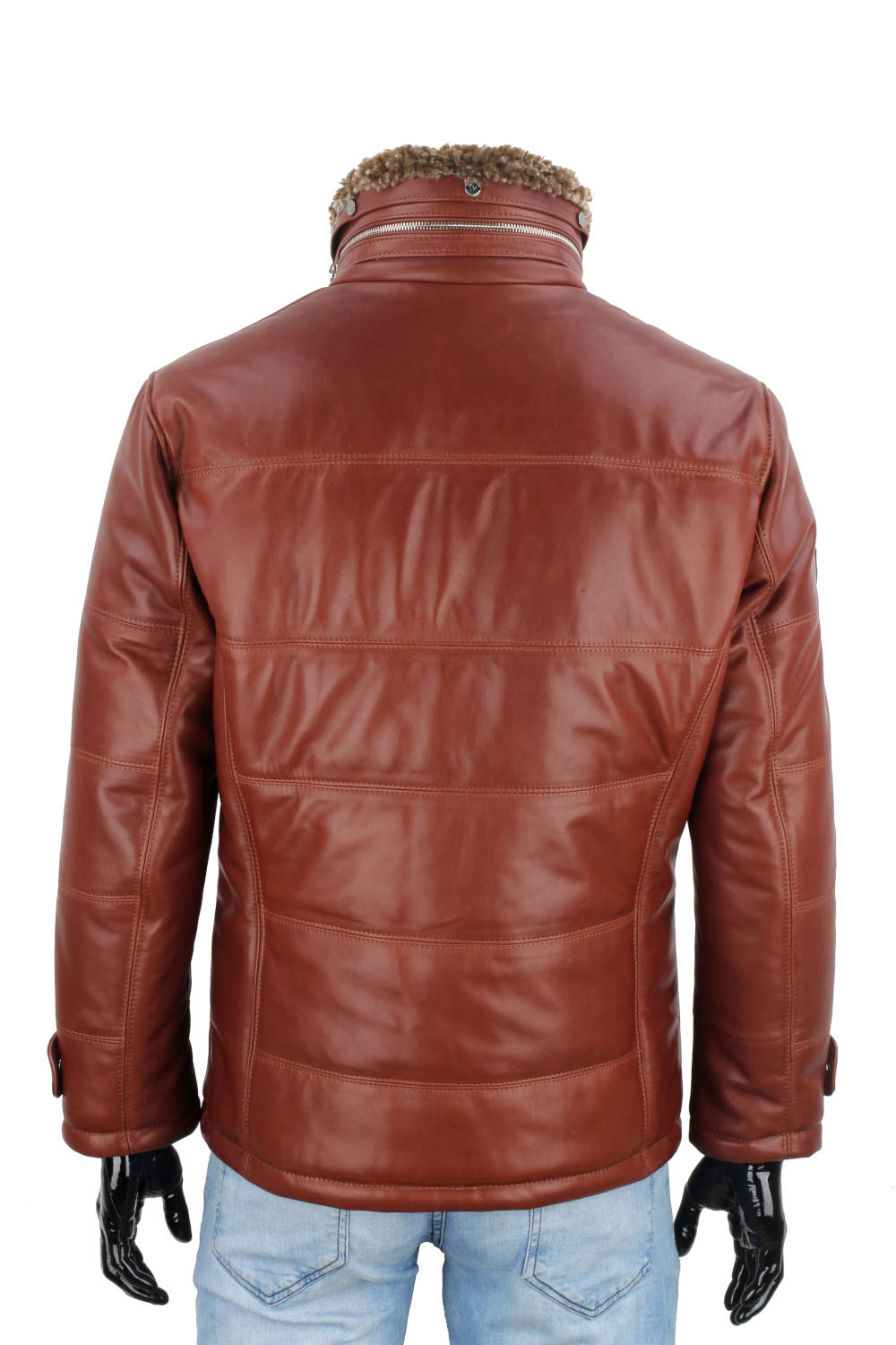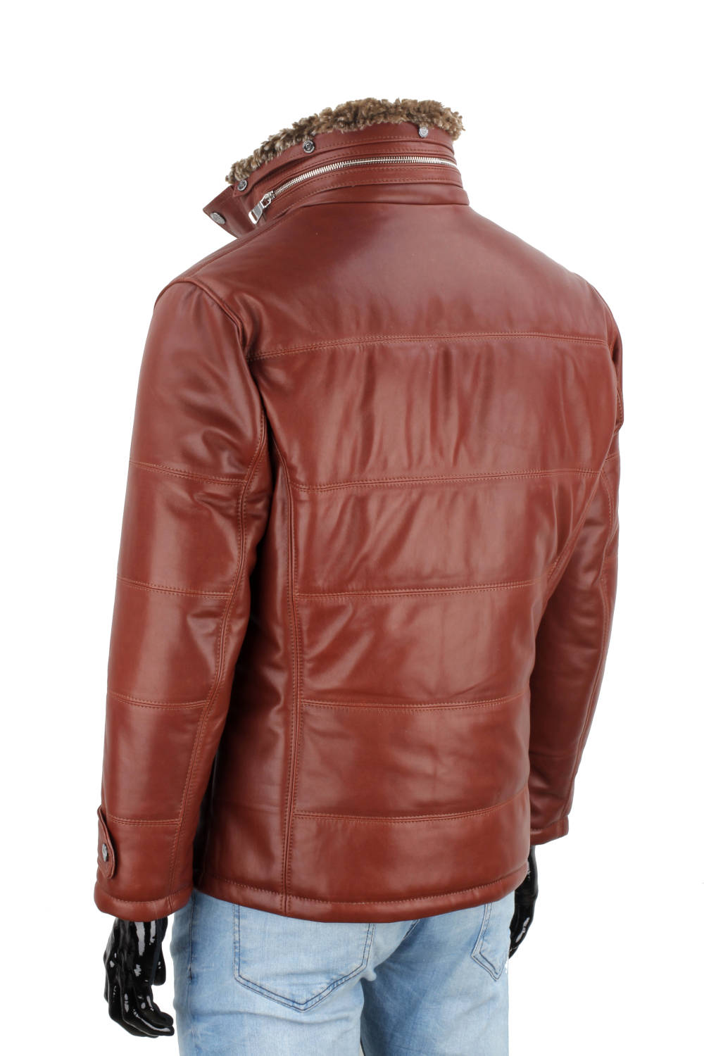 BRU122A - Ciepła brązowa kurtka skórzana męska pikowana DORJAN