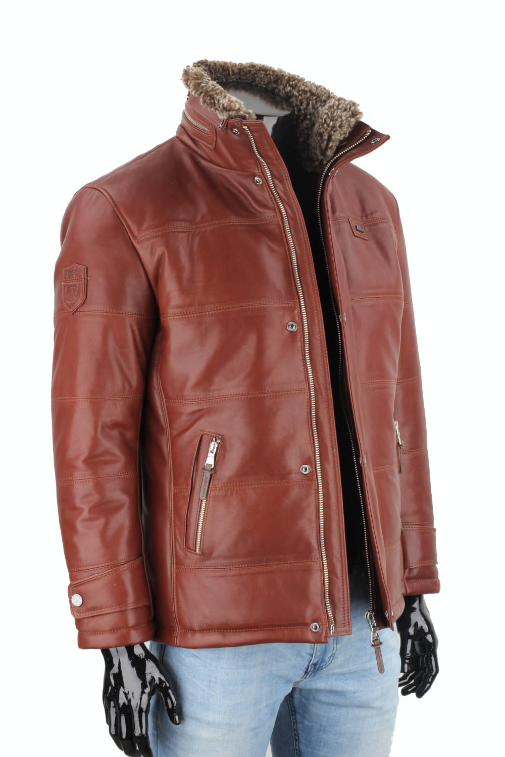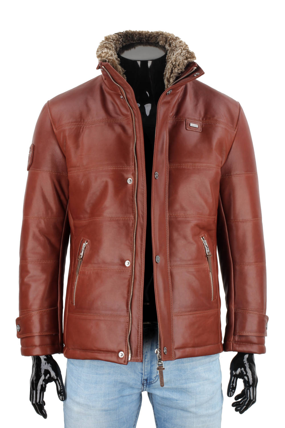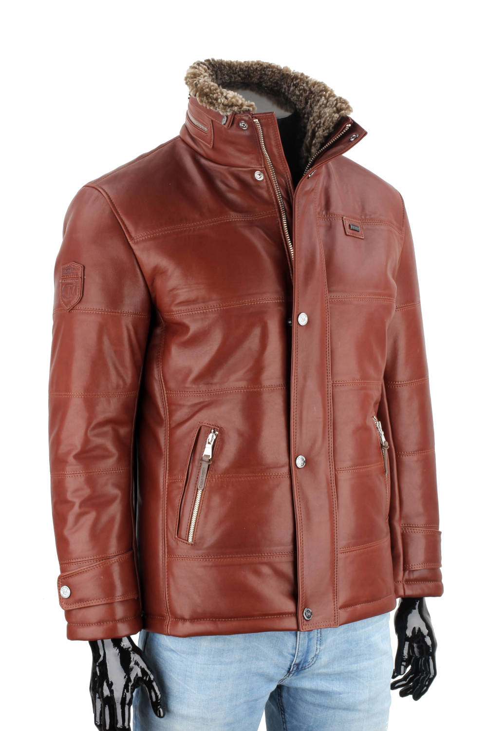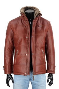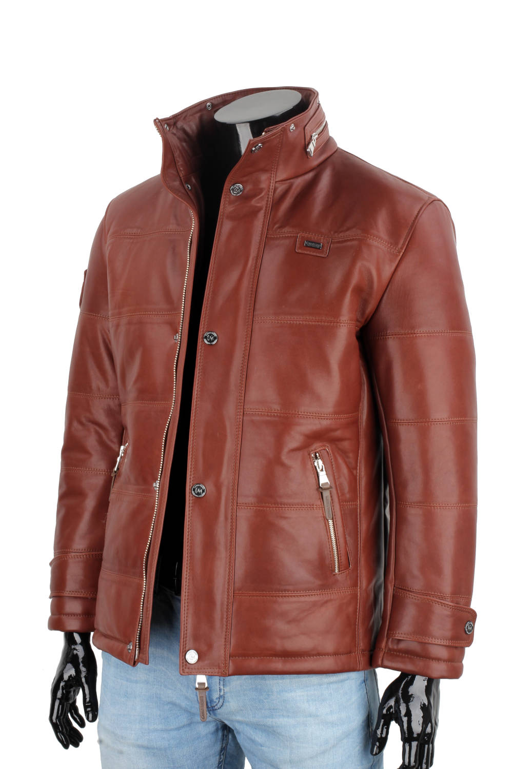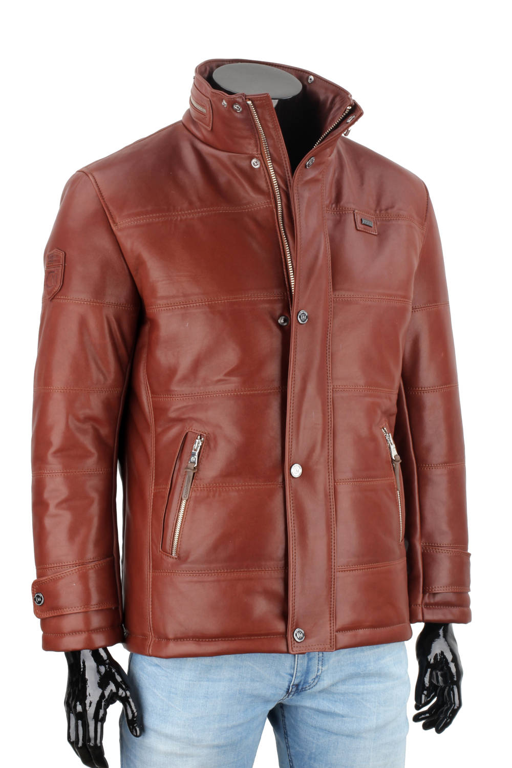 BRU122A - Ciepła brązowa kurtka skórzana męska pikowana DORJAN