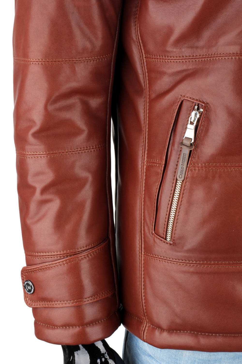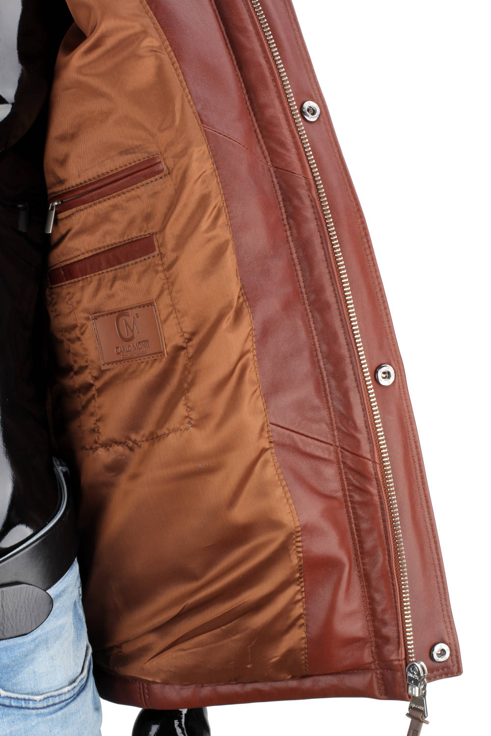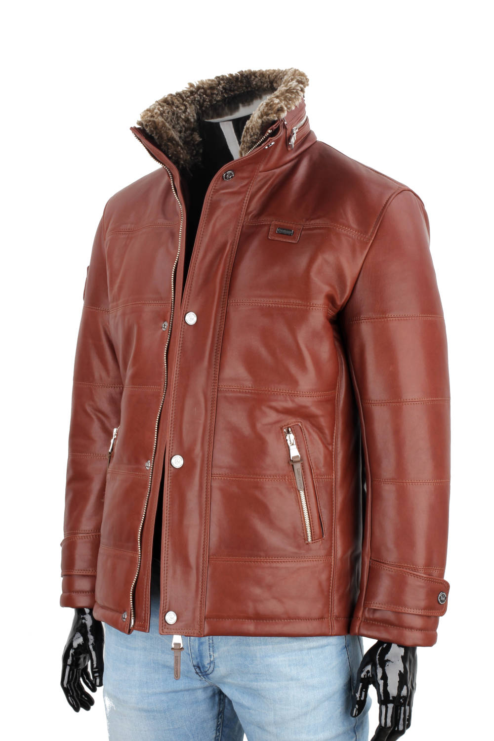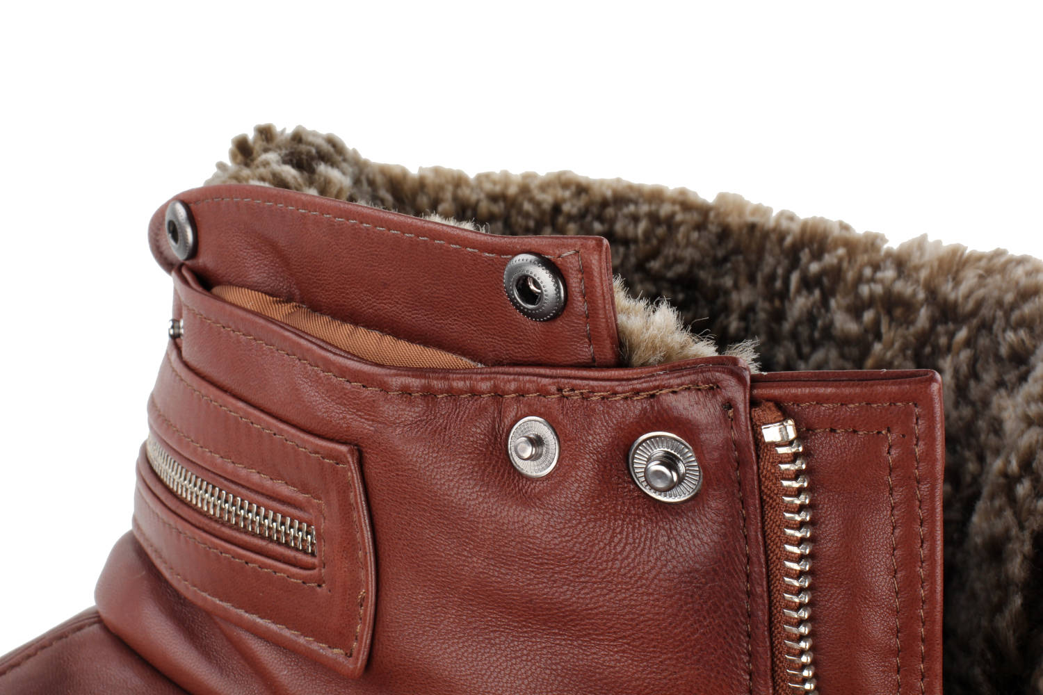 BRU122A - Ciepła brązowa kurtka skórzana męska pikowana DORJAN
