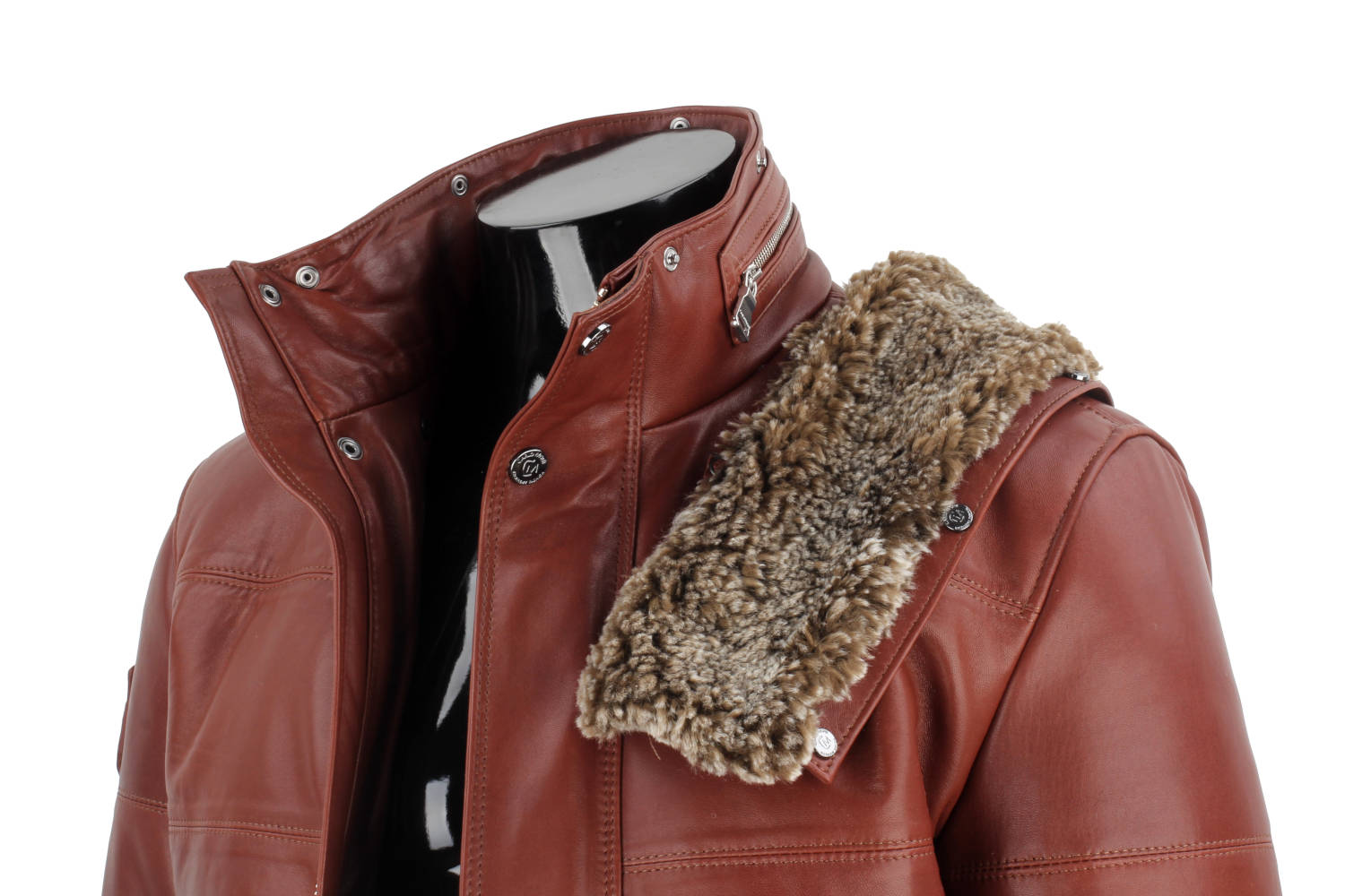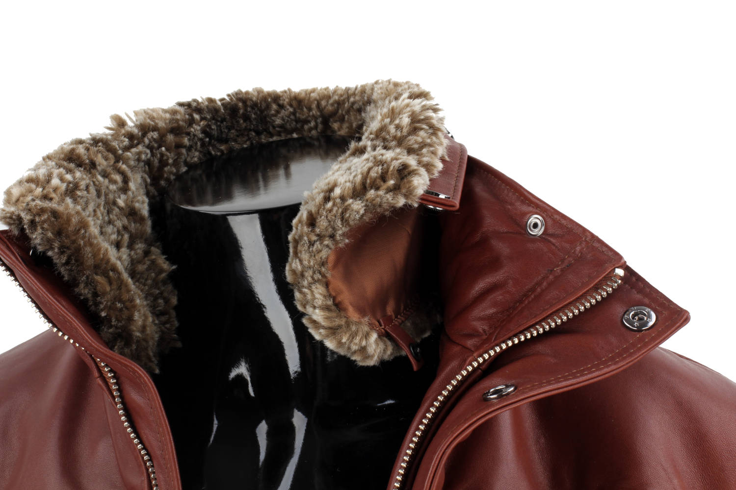 - wysoki, odpinany kołnierz z kożucha naturalnego, przypinany na zatrzaski