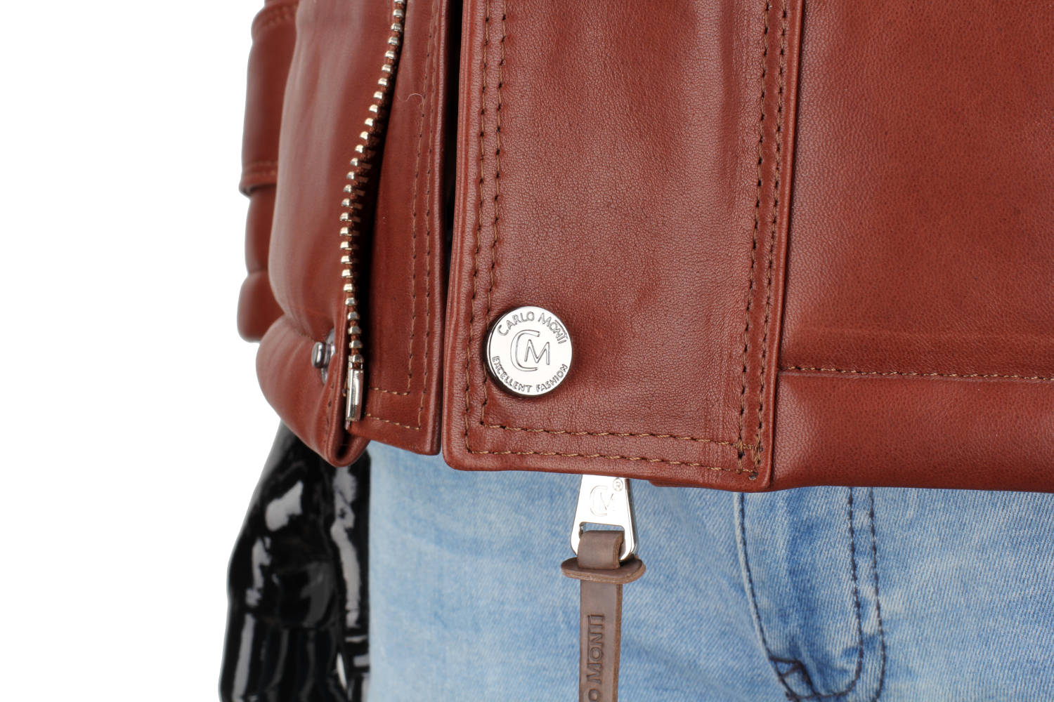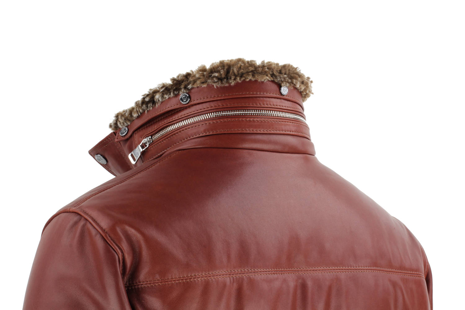 - kurtka zapinana na zamek kryty skórzaną listwą zapinaną na napy