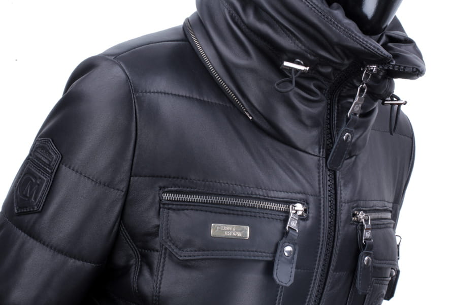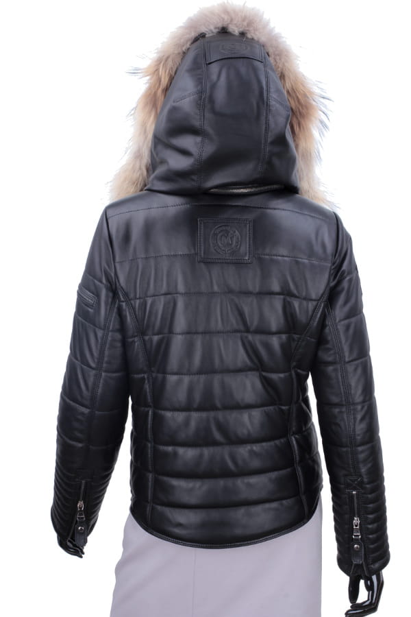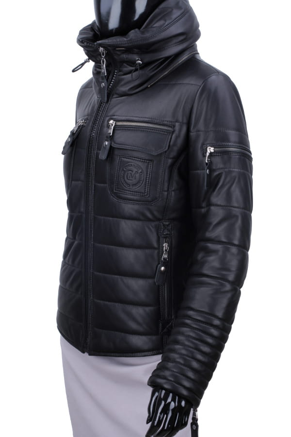 Model BSA450_2 firmy DORJAN to nowoczesna i stylowa skórzana kurtka skórzana damska damska z ociepleniem, wykonana z najwyższej jakości naturalnej skóry jagnięcej w kolorze czarnym. W pełni skórzany kaptur z możliwością odpięcia, wykończony futrem naturalnym (możliwość wyboru koloru), pełni zarówno rolę użytkową, chroniąc głowę przed zimnem i wiatrem, jak i rolę dekoracji z możliwością stylizacji. Opcja odpinania futerka z obszycia kaptura oraz samego kaptura, pozwala na swobodę w kreowaniu różnych stylizacji. Pikowanie technologią Thermo Fleece zapewnia kurtce odpowiednią ilolację termiczną i sprawia, że jest ciepła zachowując przy tym lekkość i miękkość. Wysoka ocieplana stójka z możliwością regulacji, dodatkowo chroni szyję przed chłodem i podmuchami wiatru.