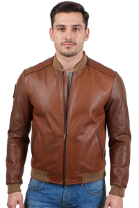Brązowa kurtka szwedka męska ze skóry naturalnej - rozmiar M - Wyprzedaż DORJAN