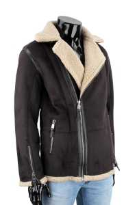 CAS015 - Czarny kożuch eko męski na sezon jesień / zima DORJAN