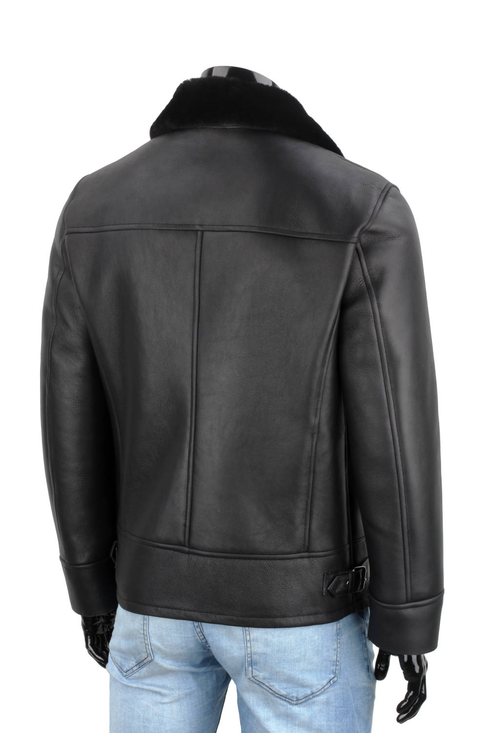 CMK001K - Ciepła pilotka męska z czarnego kożucha naturalnego DORJAN