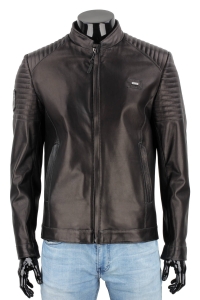 Casualowa kurtka skórzana męska z czarnej skóry owczej DORJAN