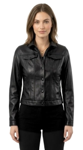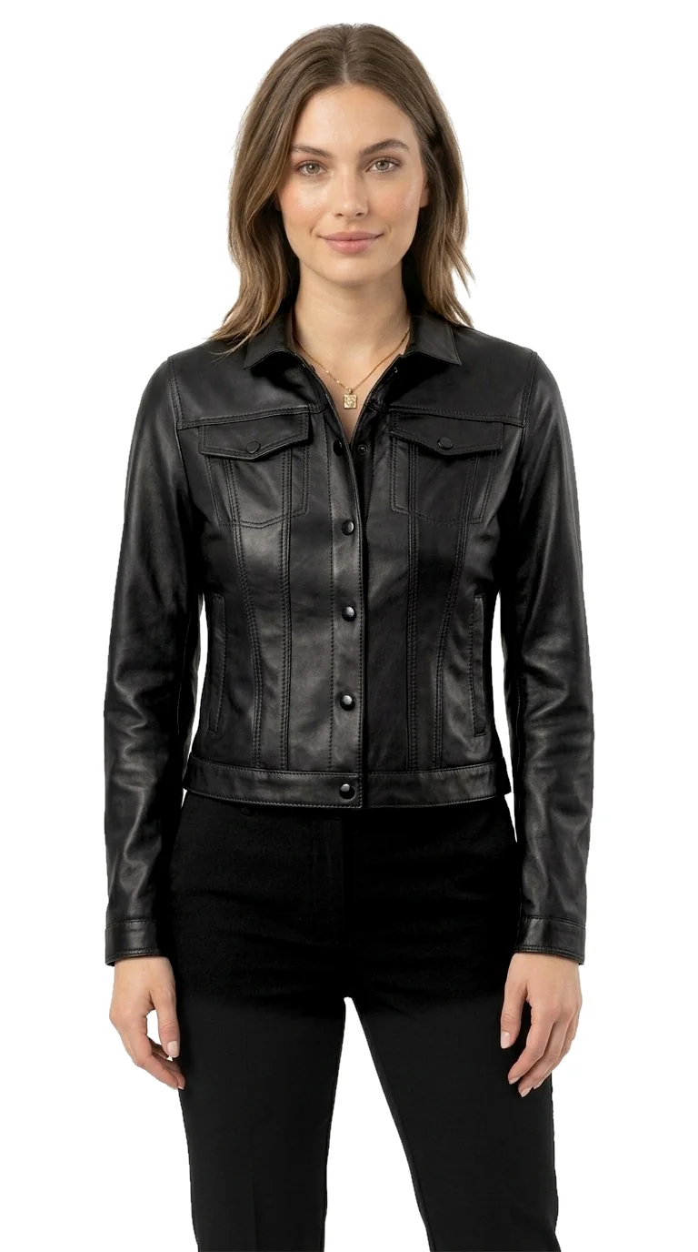 Model DRI450ML marki CARLO MONTI to lekka, damska kurtka skórzana, wykonana z najwyższej jakości czarnej skóry owczej. Krój inspirowany klasyczną jeansową kataną, z kołnierzem możliwym do postawienia i praktycznym zapięciem na napy, sprawia, że model ten doskonale łączy styl z funkcjonalnością. Charakterystyczne przeszycia wychodzące od górnych kieszeni i zwężające się ku dołowi nadają kurtce wyrazistego wyglądu. Długość sięgająca bioder oraz miękka skóra czynią tę kurtkę uniwersalnym wyborem do codziennych stylizacji, oferując przy tym elegancję, jakiej denim nie zapewni.