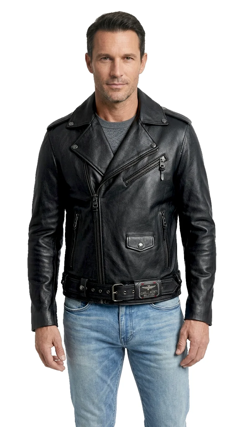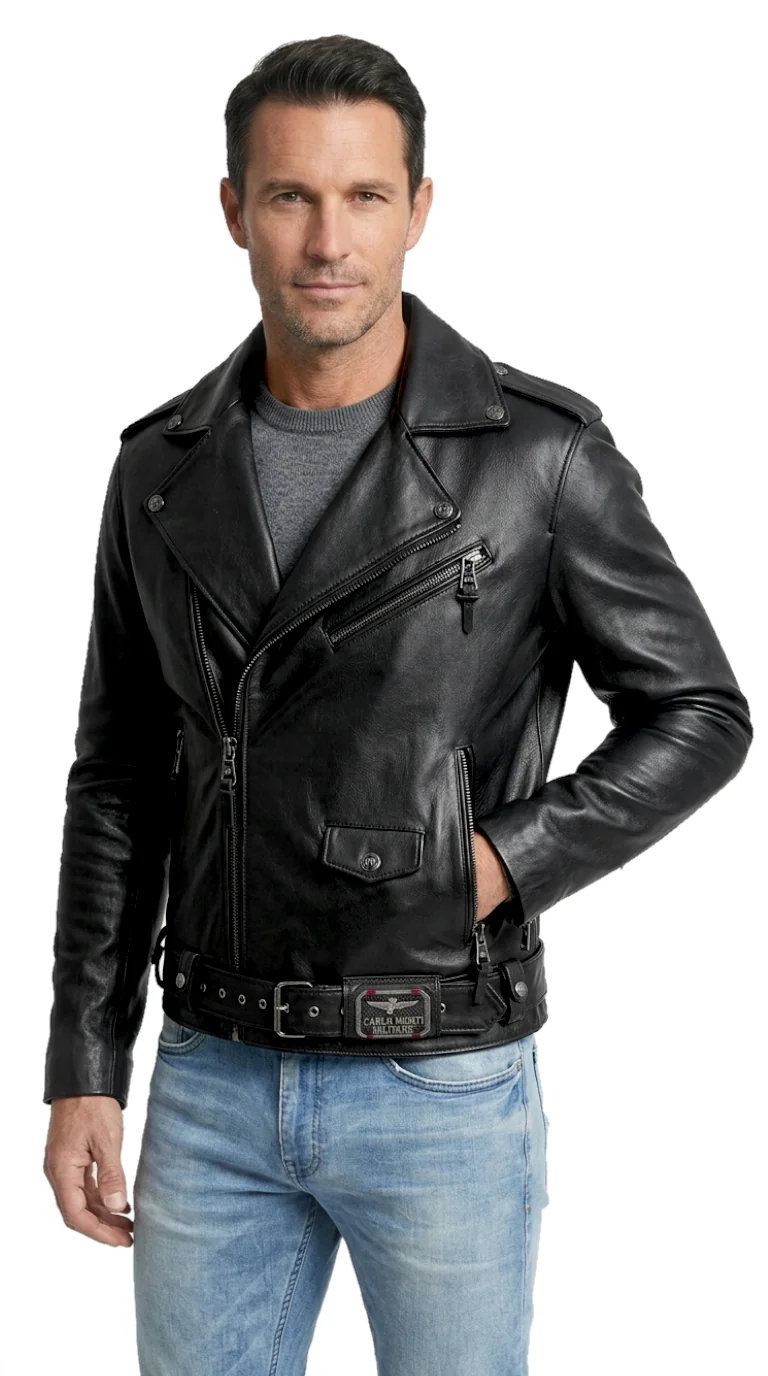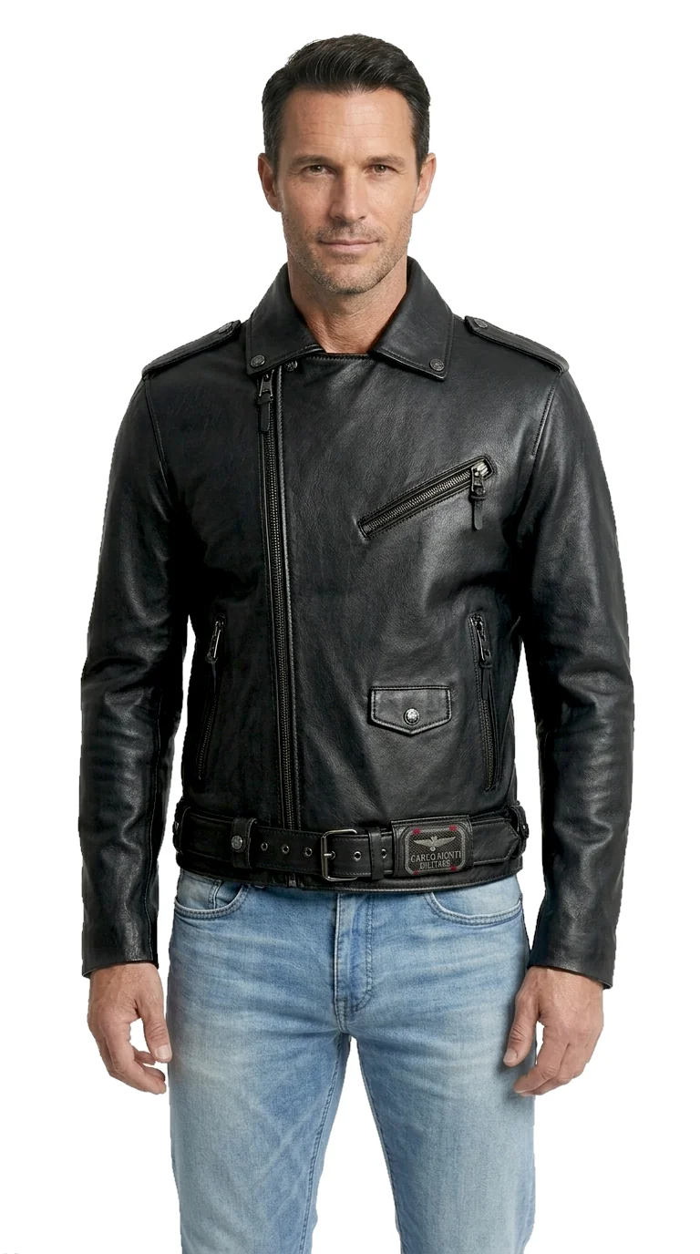 Kurtka została uszyta z grubszej, naturalnej skóry niż standardowe modele, co czyni ją solidniejszą i nieco cięższą – idealną na chłodniejsze dni i do rekreacyjnych przejażdżek motocyklem po mieście. Charakterystycznym akcentem jest naszywka z metalowym logo DORJAN na szerokiej szlufce przy pasku, podkreślająca surowy styl kurtki. To doskonały wybór dla mężczyzn, którzy szukają wyrazistej, trwałej kurtki skórzanej z historią i charakterem.