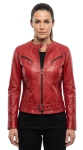 Na wyprzedaż trafia model SAR467 firmy DORJAN to lekka, casualowa kurtka skórzana damska zapinana na metalowy zamek, wykonana z naturalnej skóry owczej w kolorze szkarłatu.