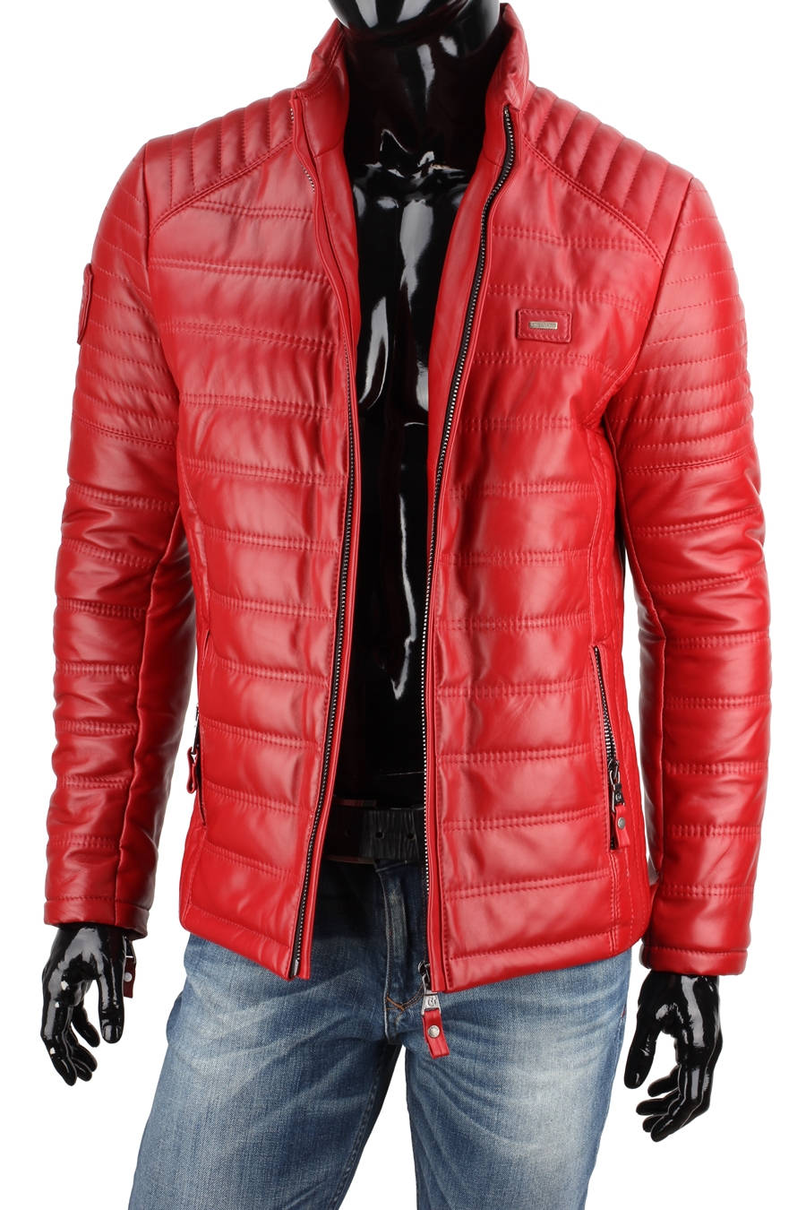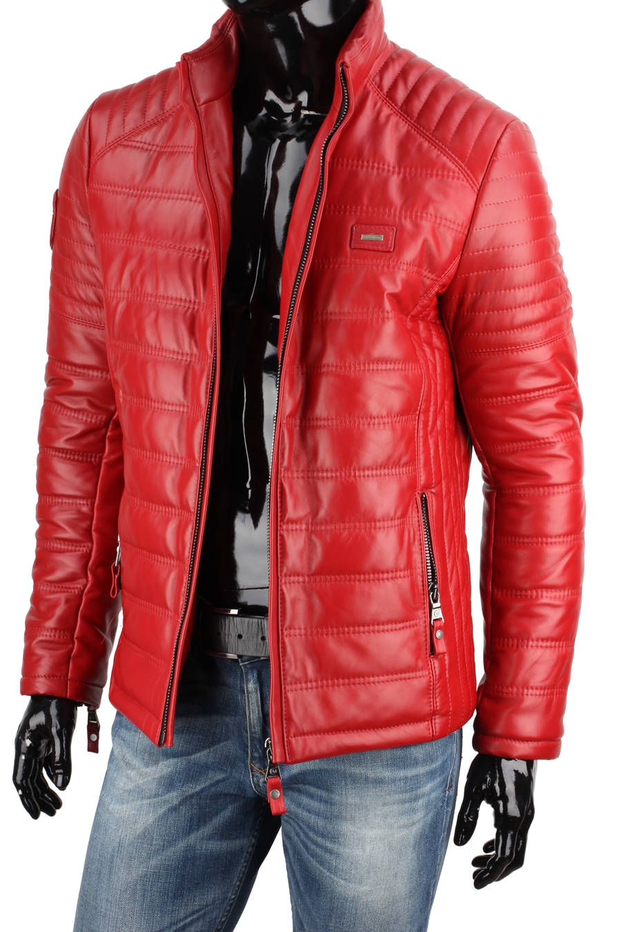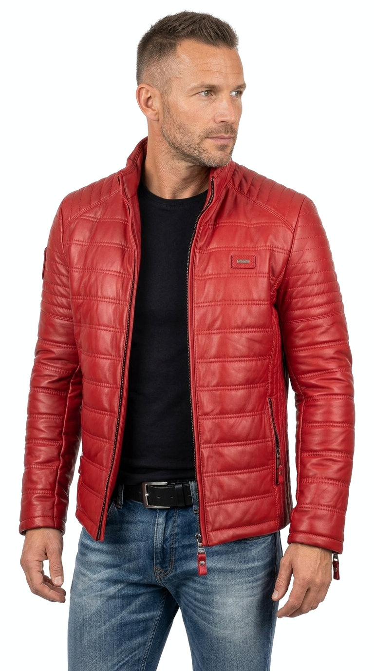 Czerwona kurtka skórzana męska pikowana - rozmiar XXL - Wyprzedaż DORJAN