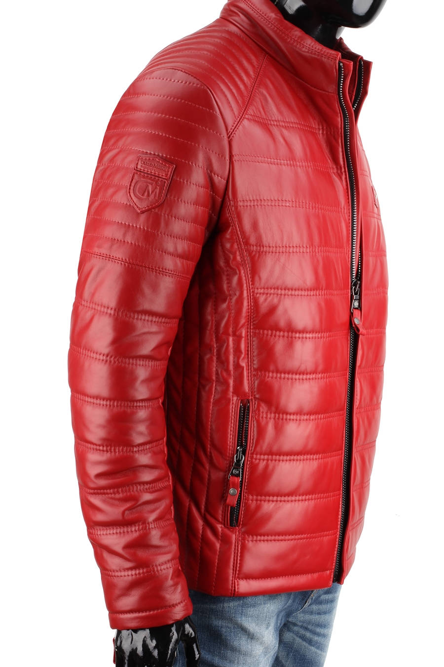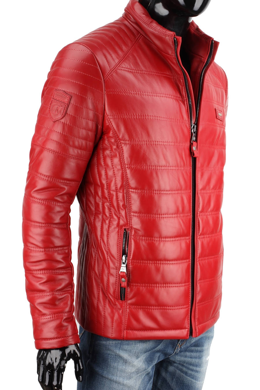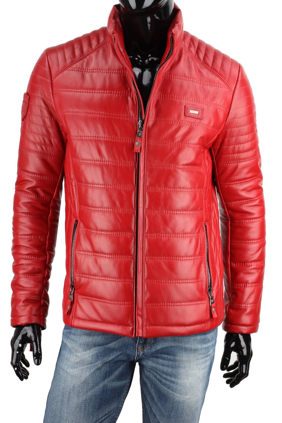 Czerwona kurtka skórzana męska pikowana - rozmiar XXL - Wyprzedaż DORJAN