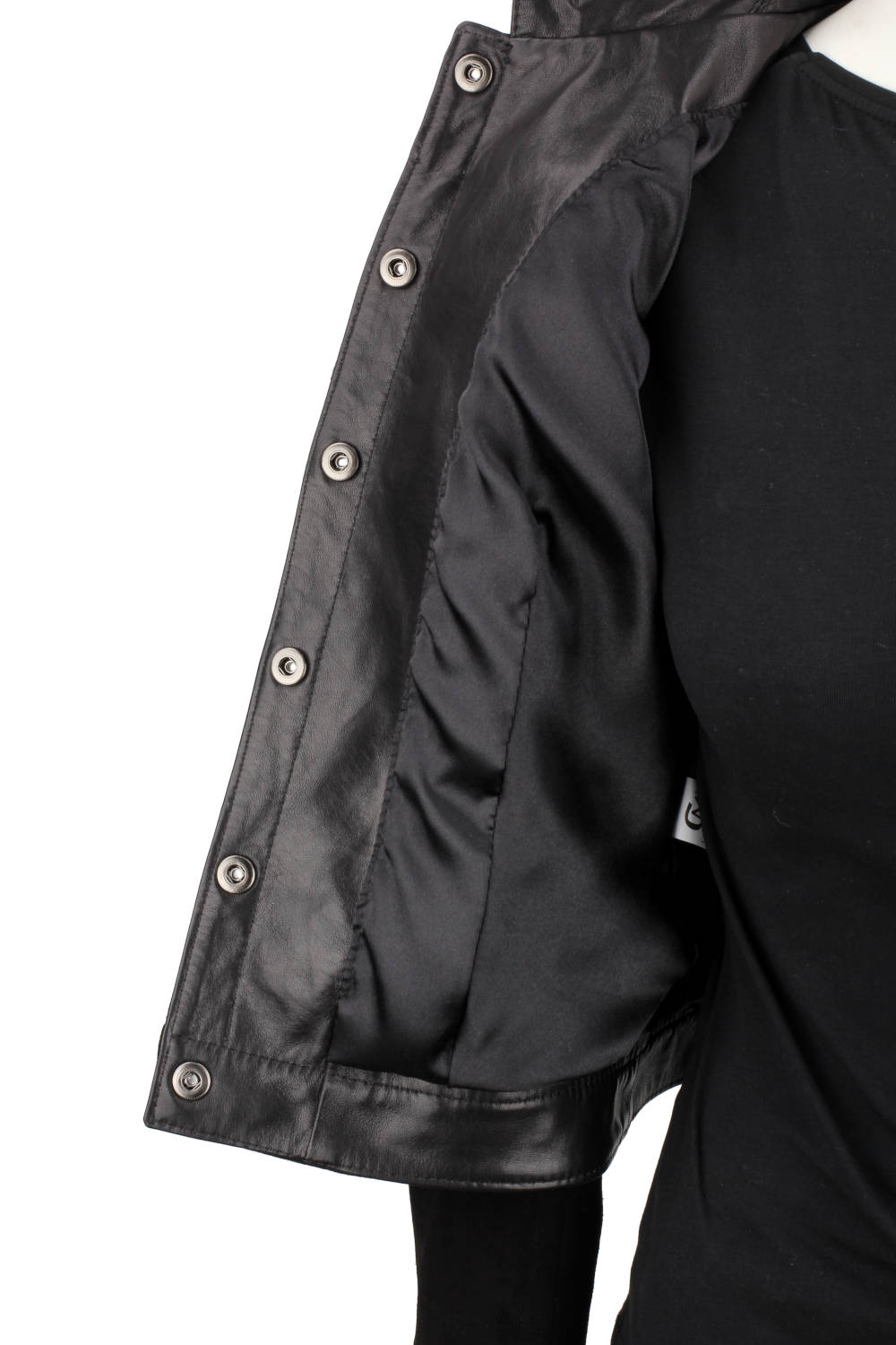 - długie, proste rękawy z mankietem zapinanym na nap i wykończeniem ze skóry licowej