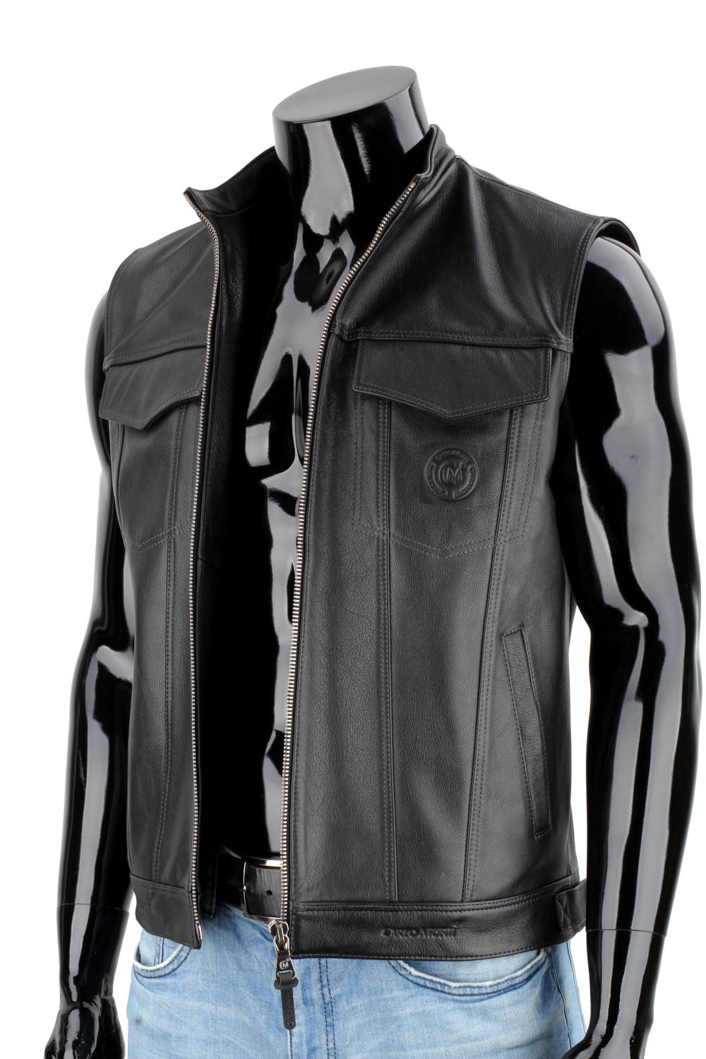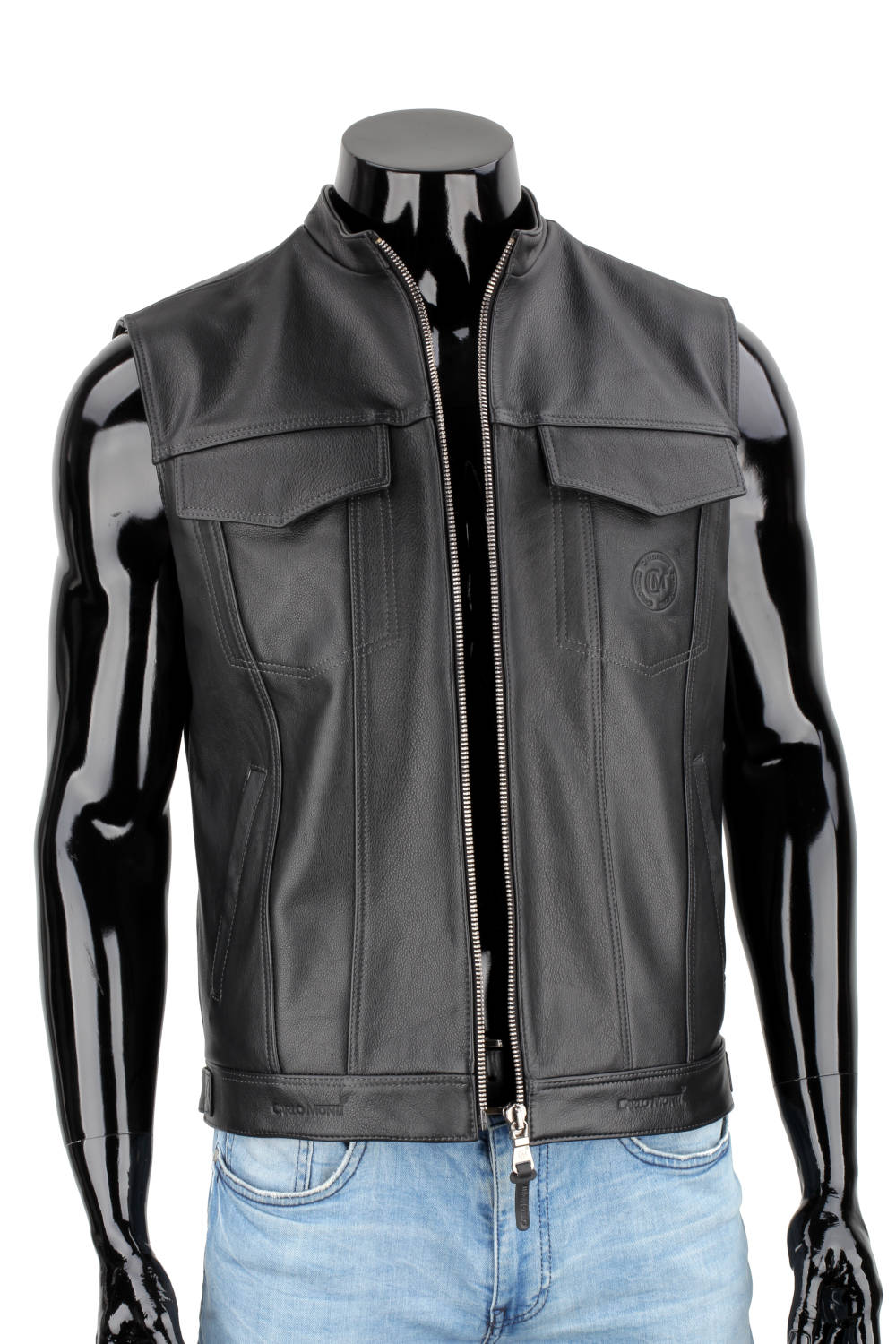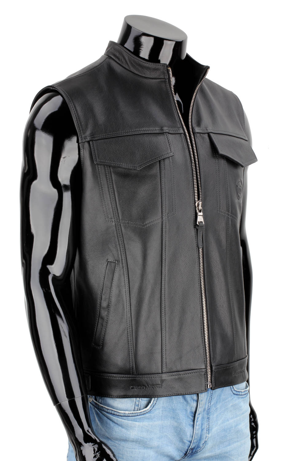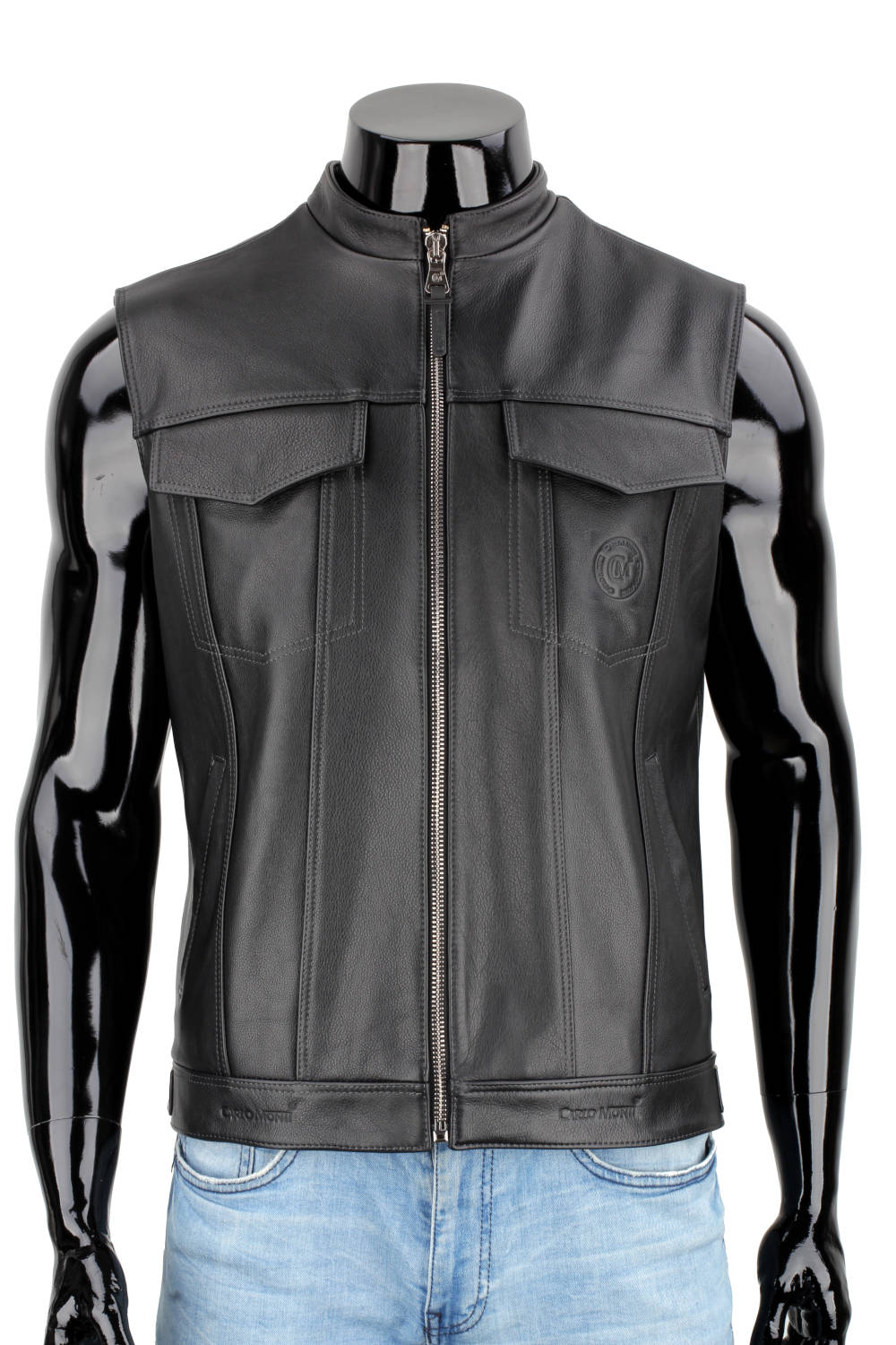 DUC950 - Czarna kamizelka motocyklowa skórzana męska DORJAN