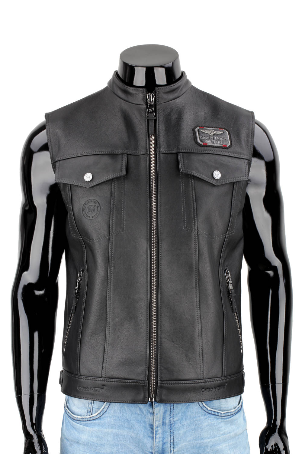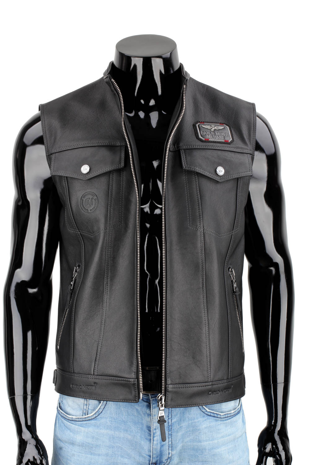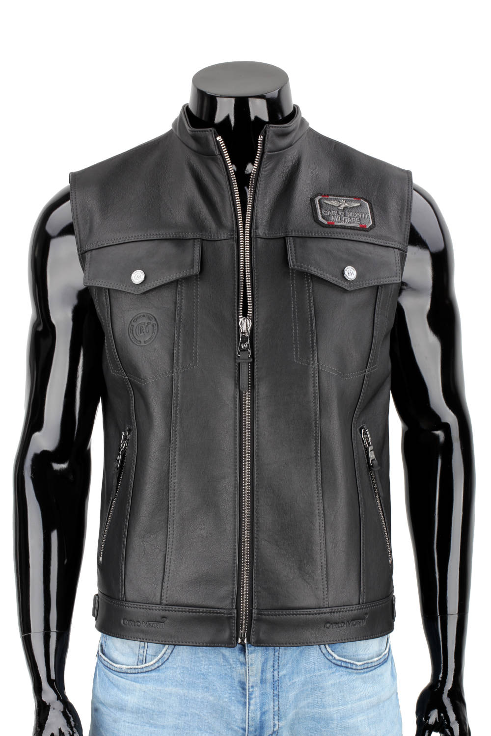 DUC950N - Męska kamizelka motocyklowa skórzana z naszywkami DORJAN