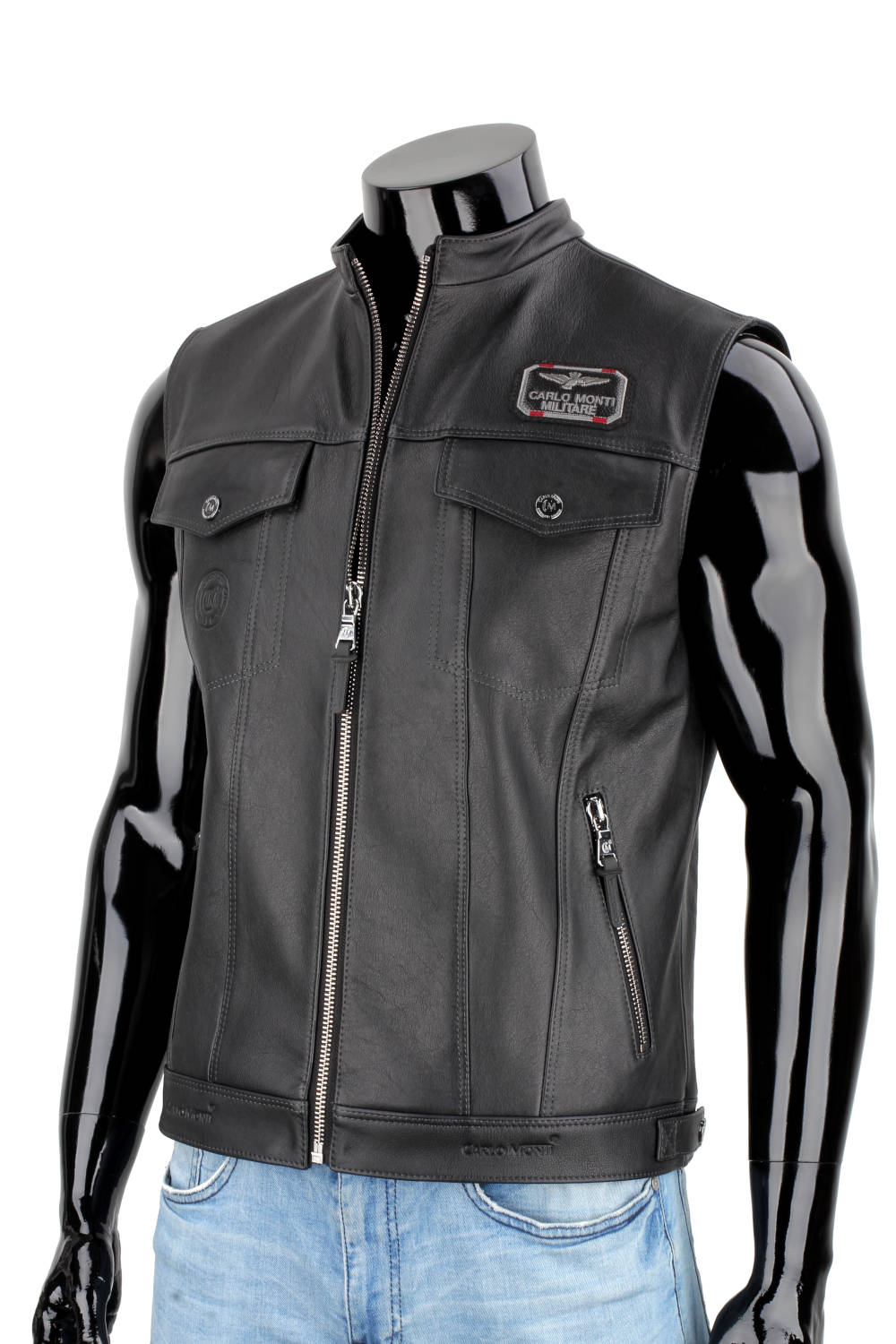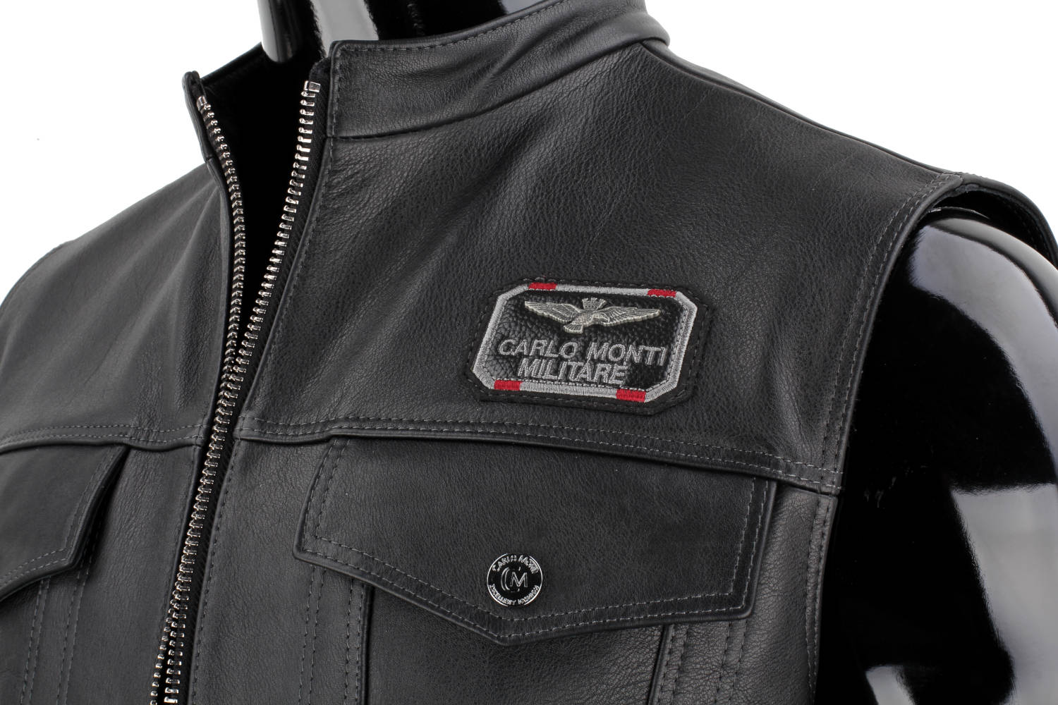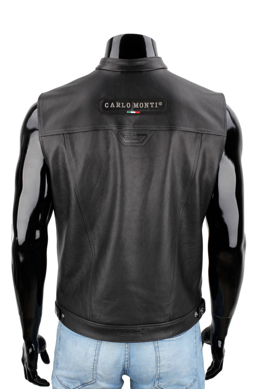 DUC950N - Męska kamizelka motocyklowa skórzana z naszywkami DORJAN