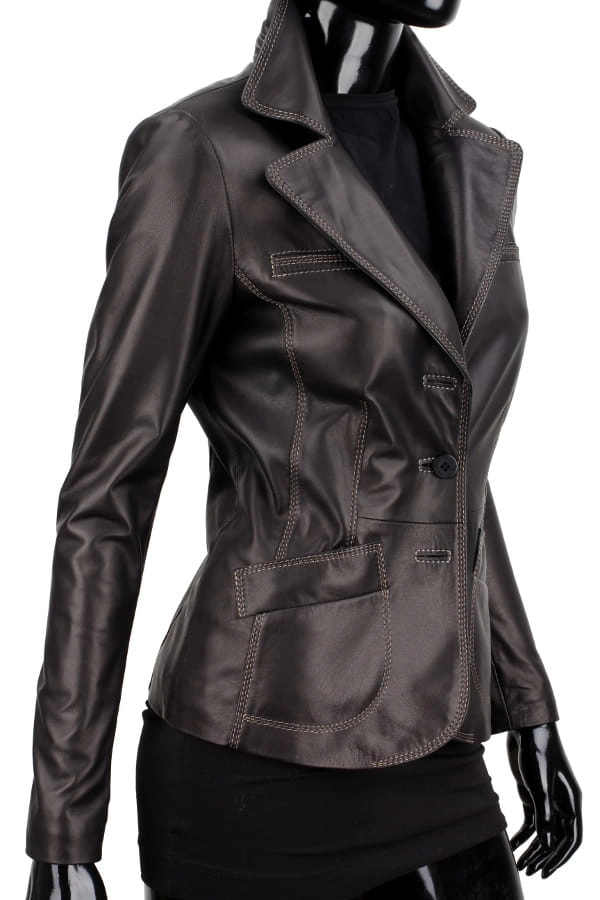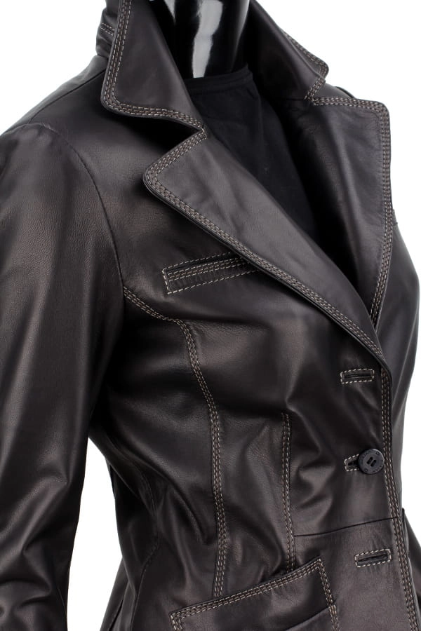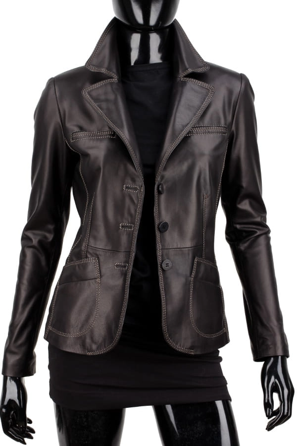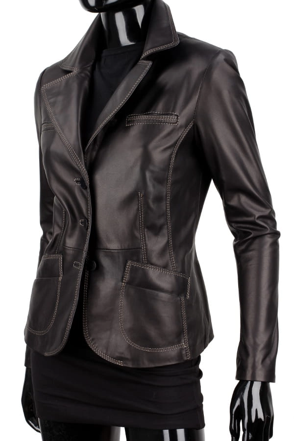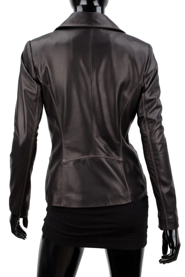 Damska marynarka skórzana przeszyta kontrastowymi nićmi DORJAN