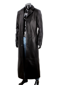 Długi płaszcz skórzany męski jednorzędowy z czarnej skóry DORJAN