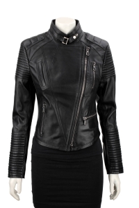 ELI450 - Damska ramoneska biker z czarnej skóry naturalnej DORJAN