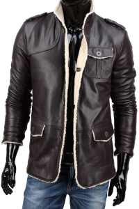 ELV160 - Ciepła kurtka skórzana męska koloru gorzkiej czekolady DORJAN