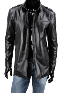 EML450 - Czarny skórzany płaszcz męski zapinany na guziki DORJAN