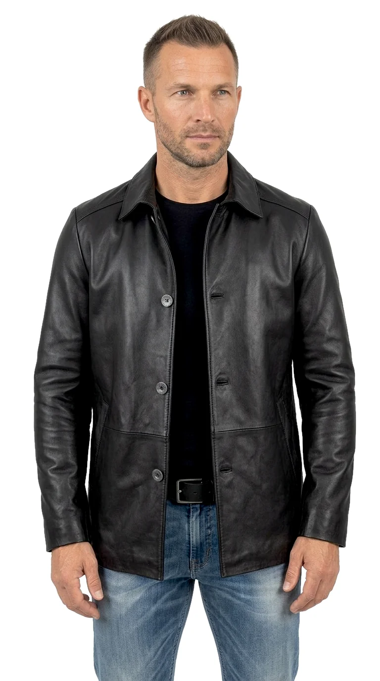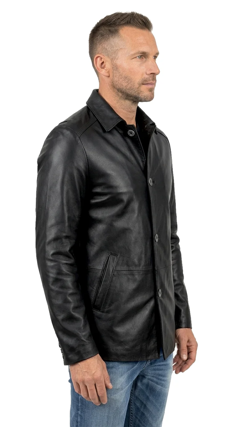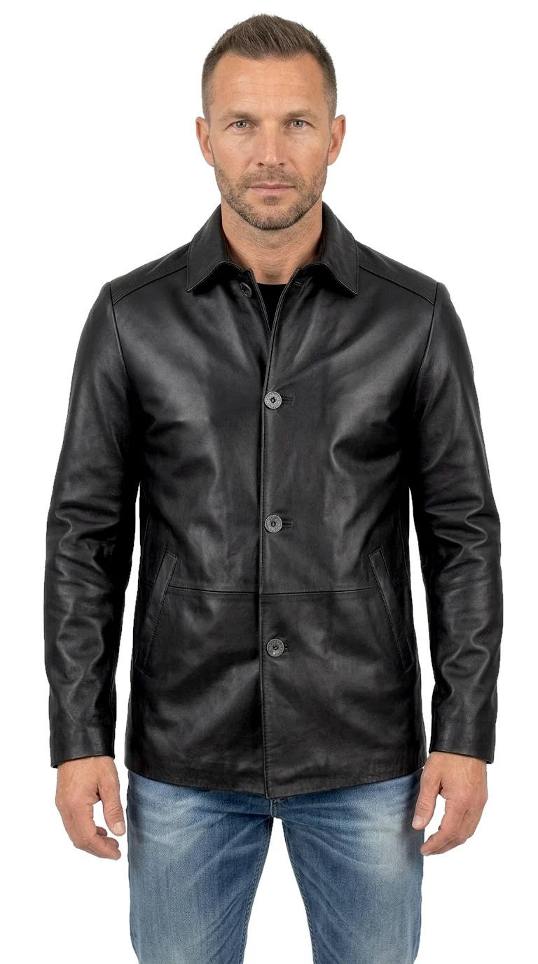 Elegancka kurtka skórzana męska zapinana na guziki DORJAN