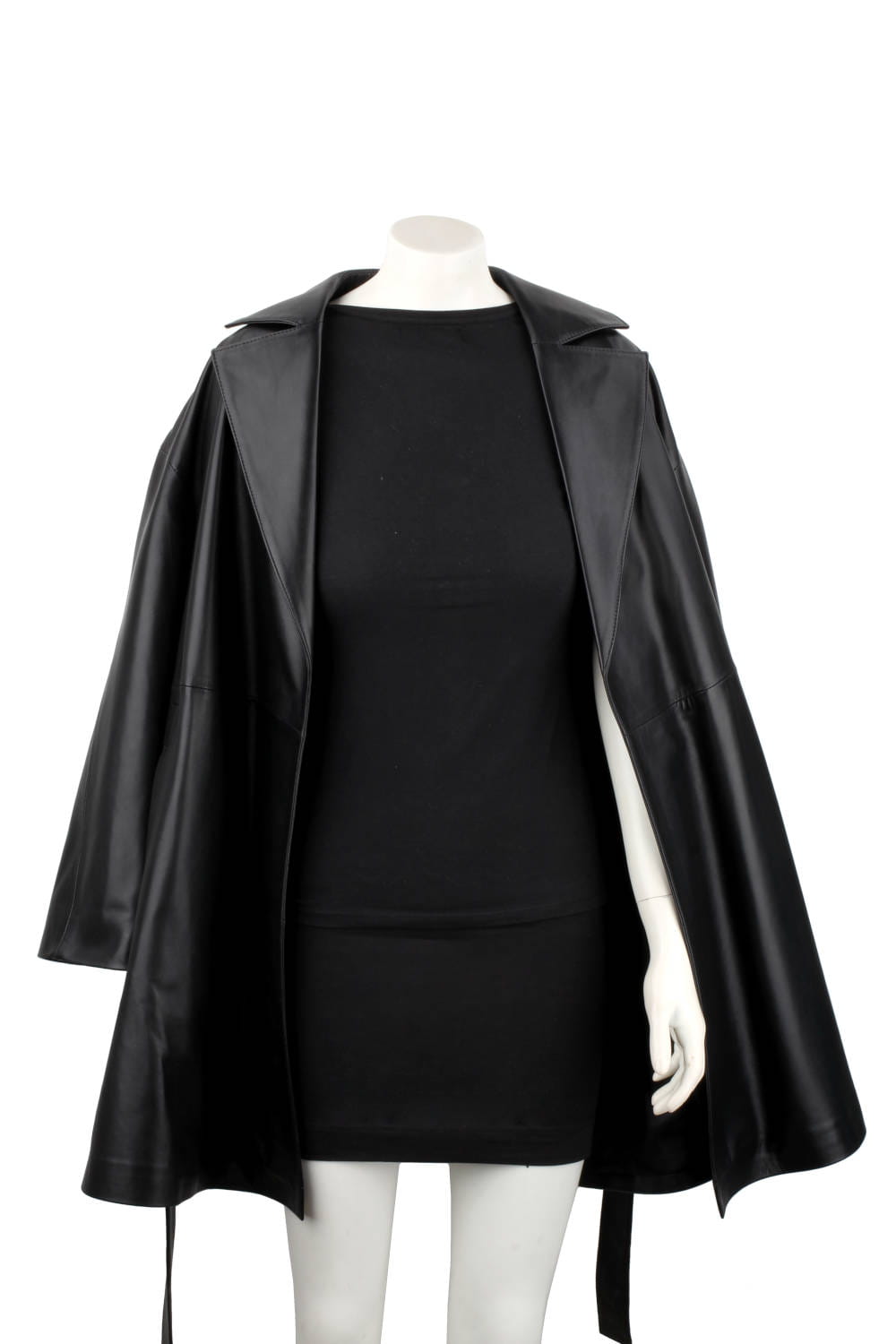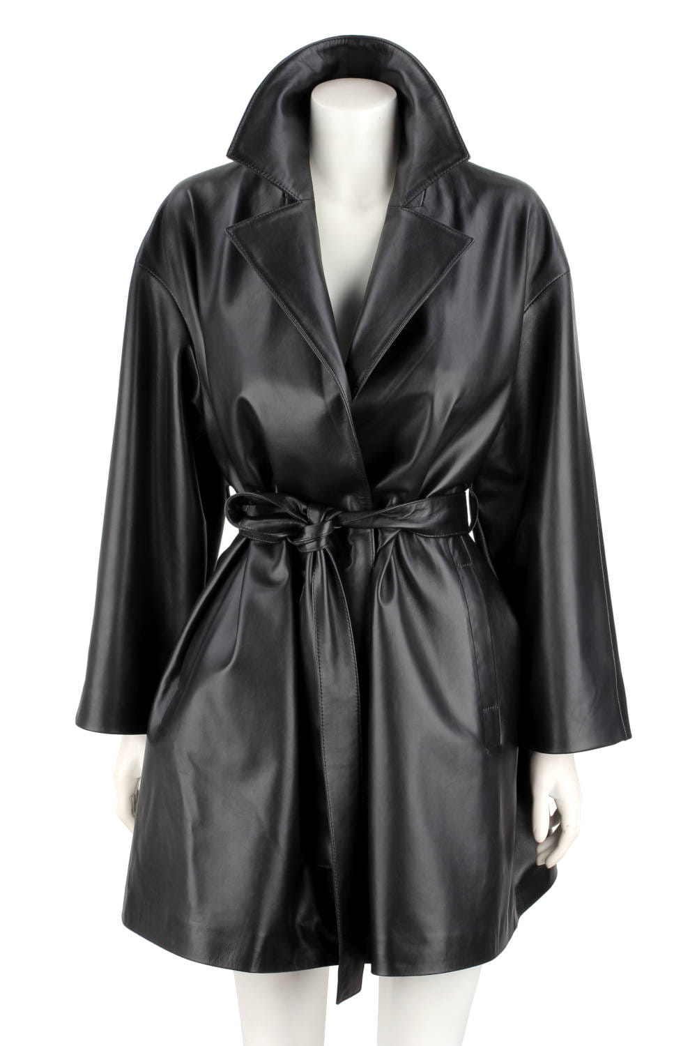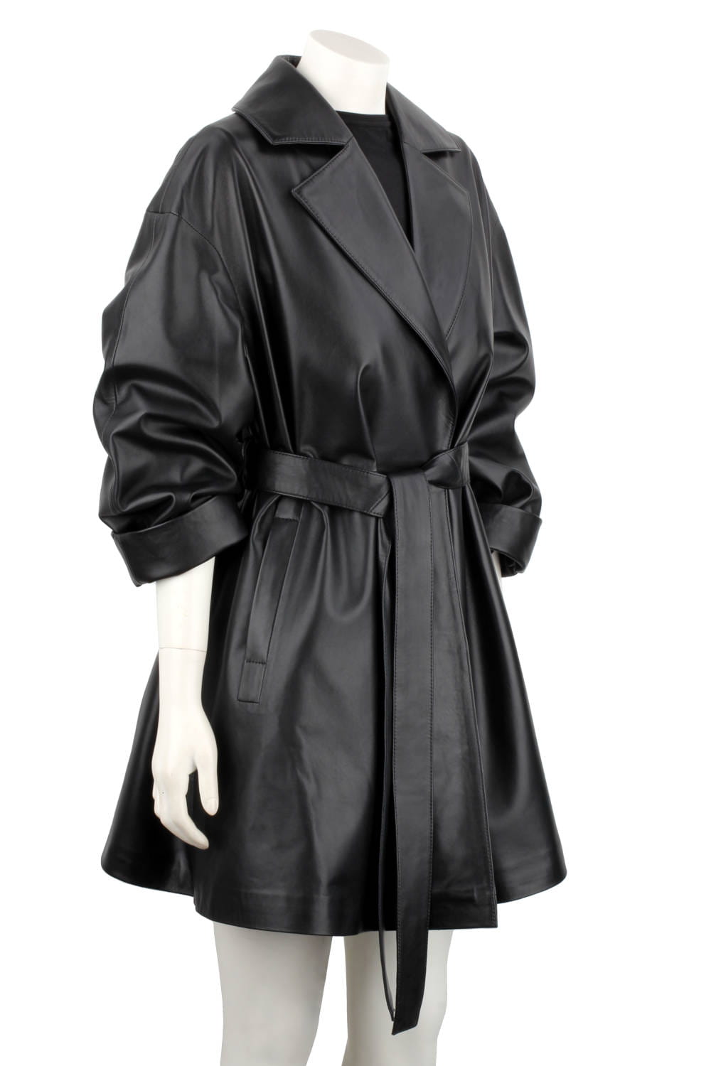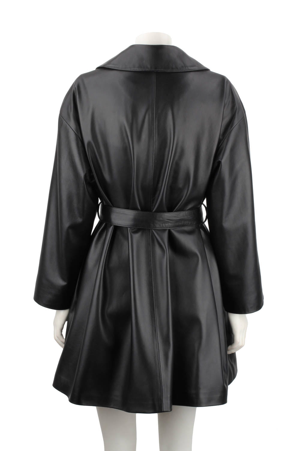 Model FLO450 od firmy DORJAN to nowoczesny płaszcz skórzany damski w fasonie oversize. Płaszcz wykonany z najwyższej jakości czarnej skóry naturalnej licowej owczej. Minimalistyczna forma kroju z klasycznym kołnierzem posiadającym opcję postawienia, świetnie sprawdzi się zarówno jako casualowe uzupełnienie miejskiej stylizacji, ale może z powodzeniem posłużyć jako element bardziej eleganckiego stroju na oficjalne wyjścia. Brak zapięcia i wiązanie w tali powodują, że płaszcz bardzo łatwo dopasować do wymagań własnej sylwetki. Nie ograniczają nas sztywno ustawione guziki czy zamki. Szeroki rękaw ma opcję wywinięcia, co skraca długość i kreuje nowe opcje stylistyczne.