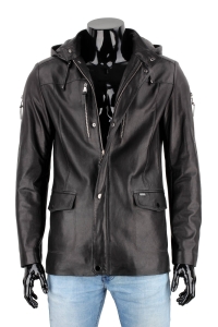 FLX450Z - Praktyczna czarna kurtka skórzana męska z kapturem DORJAN