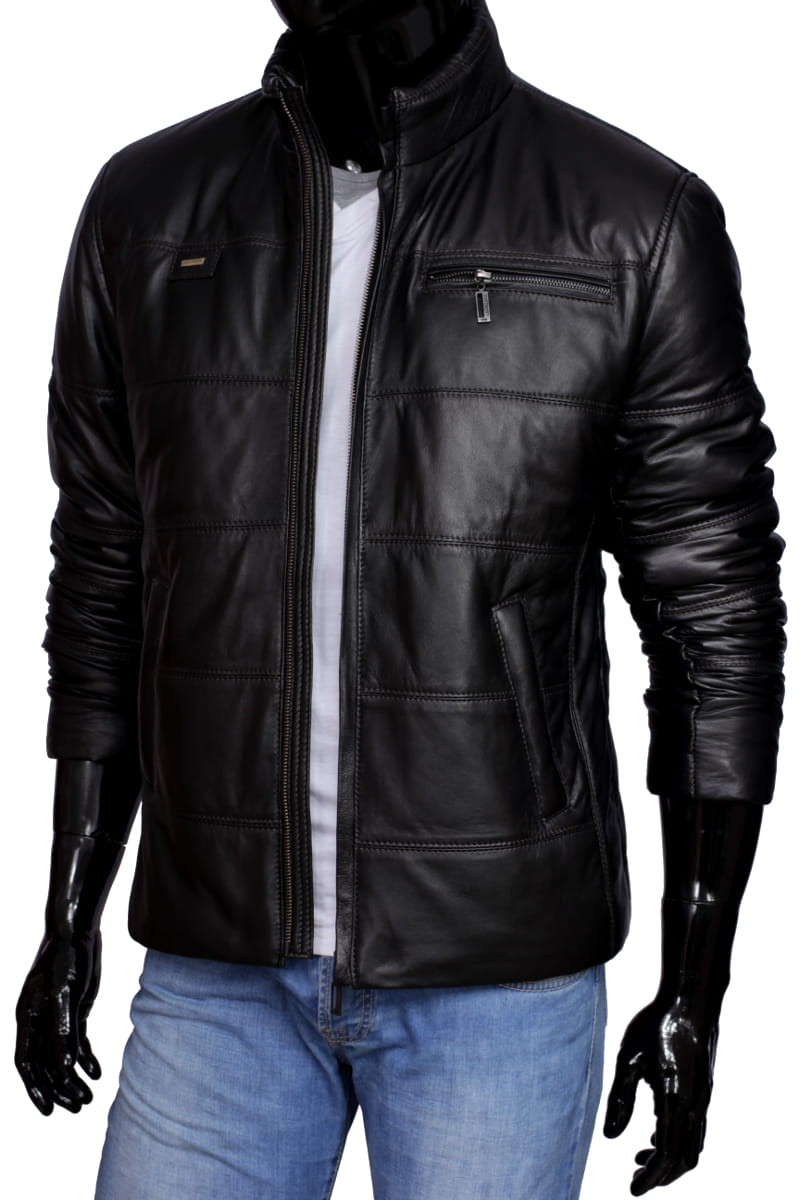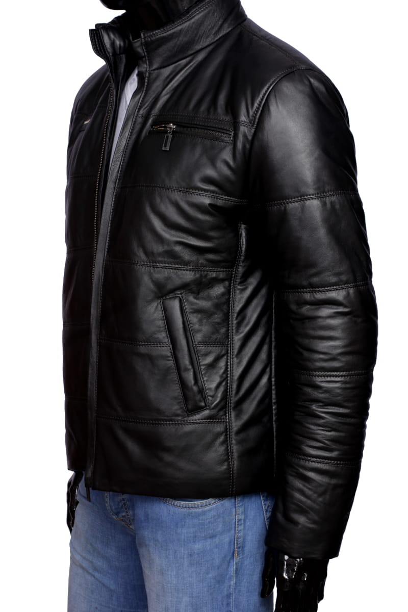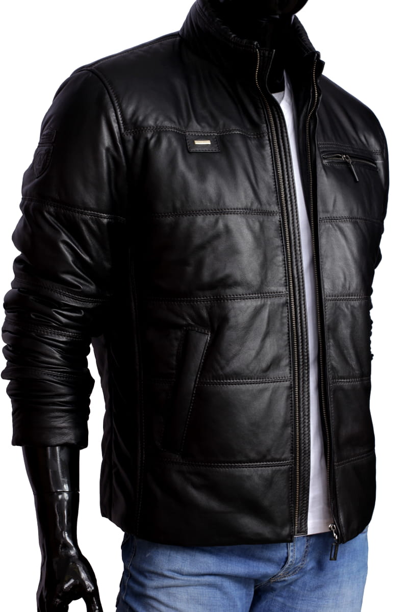 FRA450 - Klasyczna kurtka skórzana pikowana męska zimowa DORJAN