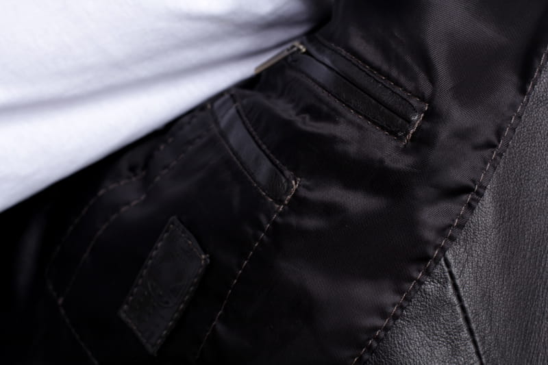 - dwie praktyczne kieszenie wewnętrzne po obu stronach kurtki (pierwsza zapinana na zamek, druga na guzik)