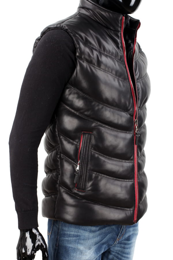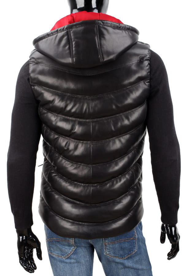 GRZ450 - Ocieplana kamizelka skórzana męska z kapturem DORJAN