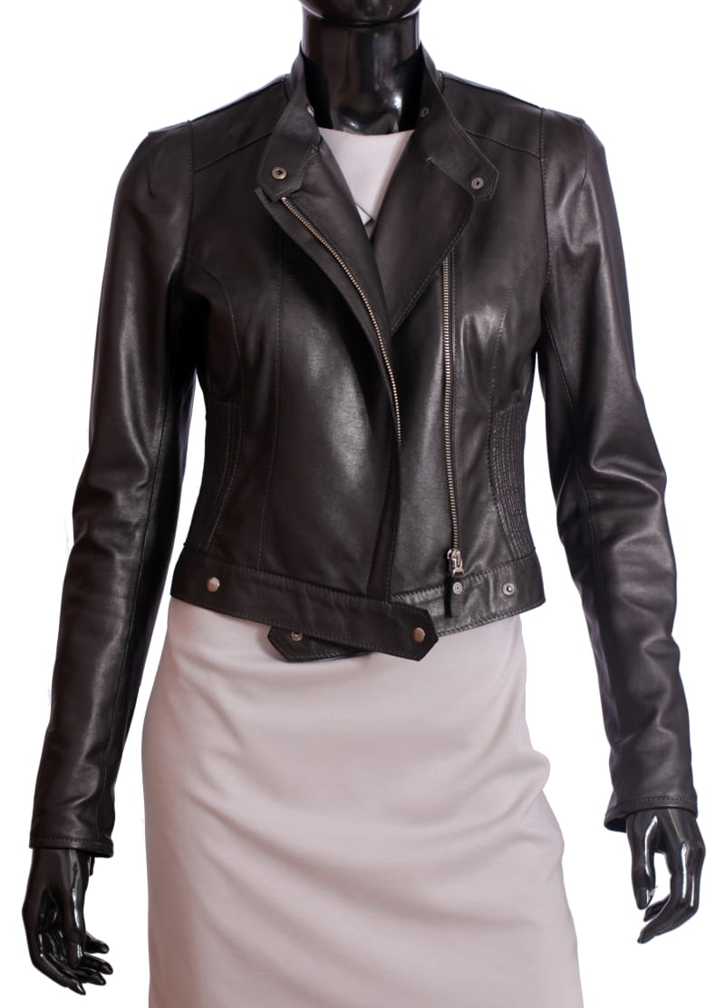 INS450 - czarna ramoneska skórzana damska w stylu vintage DORJAN