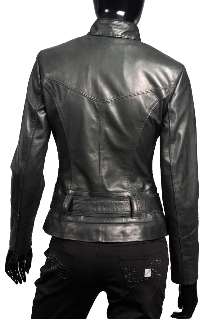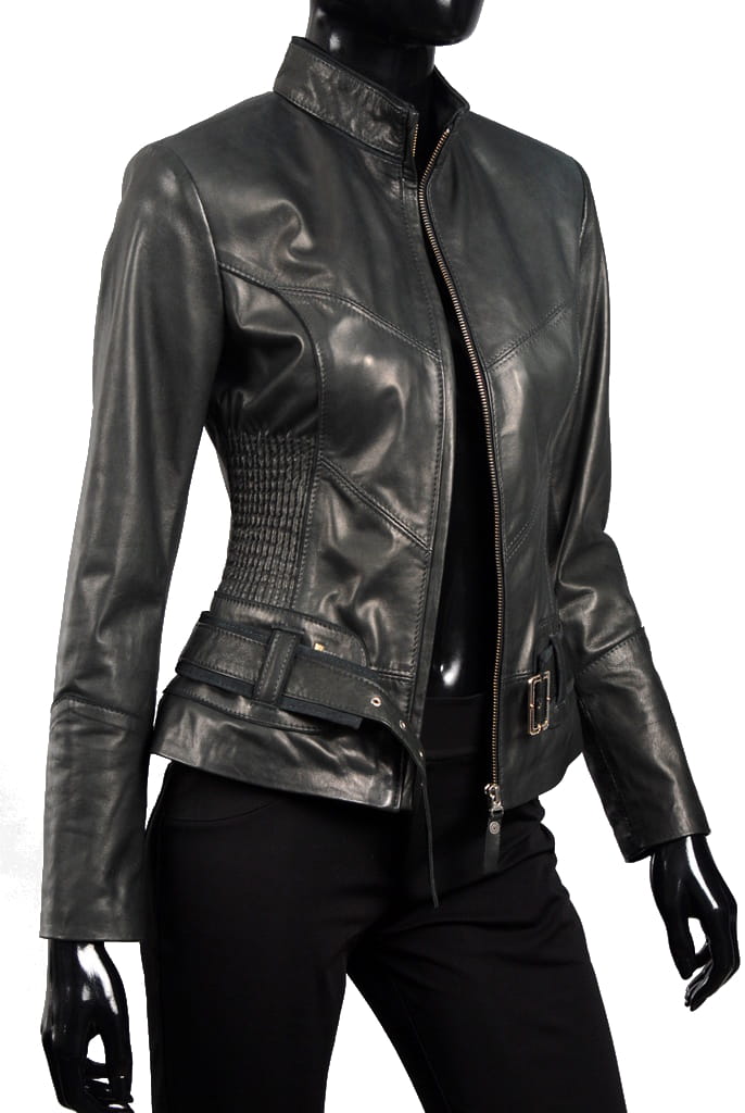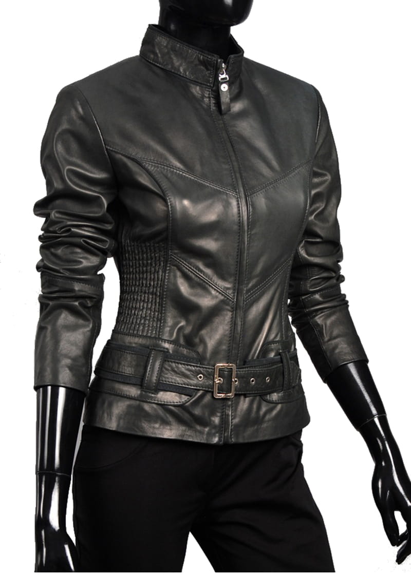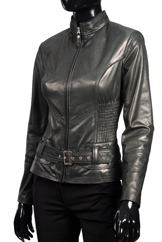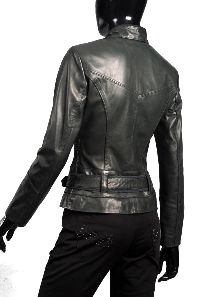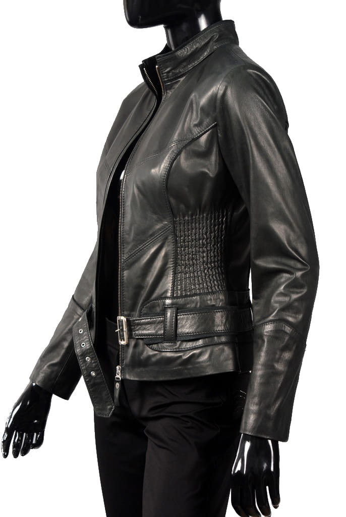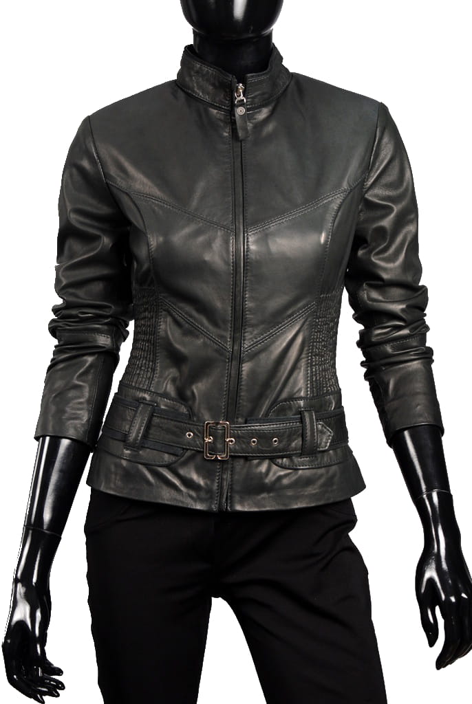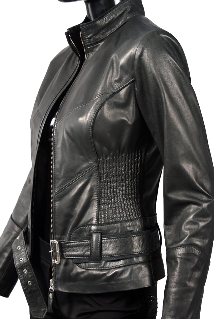IZL066 - czarna casualowa kurtka skórzana damska z paskiem DORJAN