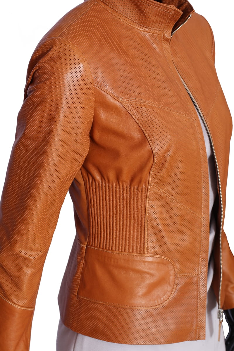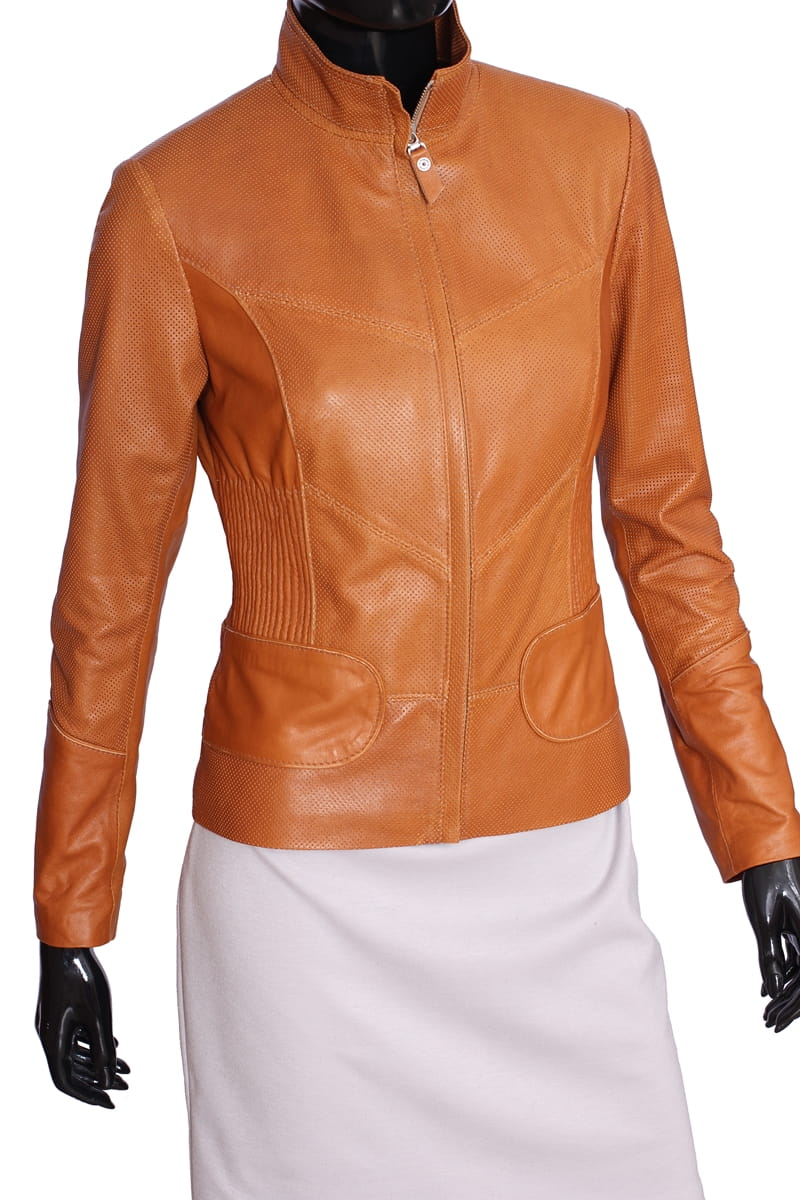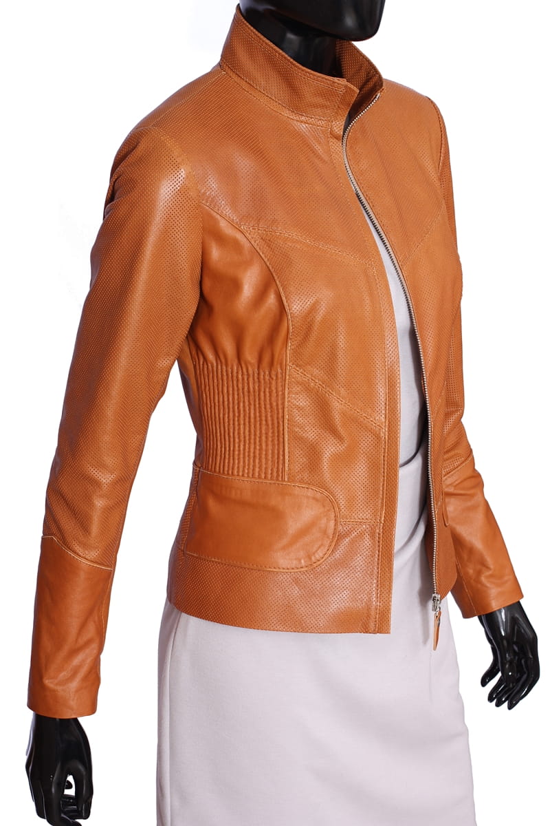 IZL080 - Camelowa kurtka skórzana damska uniwersalna DORJAN