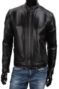 KEN451 - męska kurtka skórzana biker z czarnej skóry naturalnej DORJAN