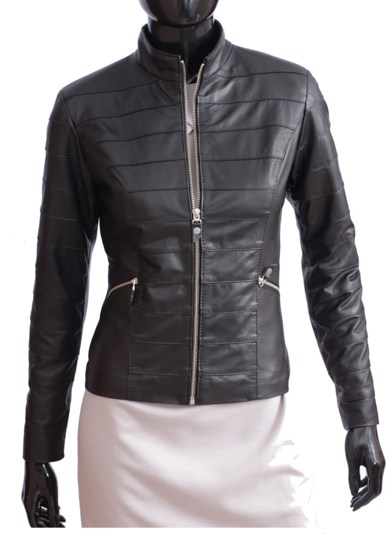 Model KRA450_2 firmy DORJAN to przeszywana damska kurtka skórzana, utrzymana w nowoczesnym, casualowym charakterze. Prosty, taliowany fason uzupełniliśmy efektownymi poziomymi przeszyciami, dzięki którym kurtka idealnie układa się na figurze, modelując jej kształt. Dwa zapinane zamkiem rozporki na tyle kurtki mają nie tylko funkcję ozdobną, ale pomagają regulować dopasowanie do sylwetki. To świetna propozycja dla Pań szukających efektownych rozwiązań stylistycznych w nowoczesnym stylu.