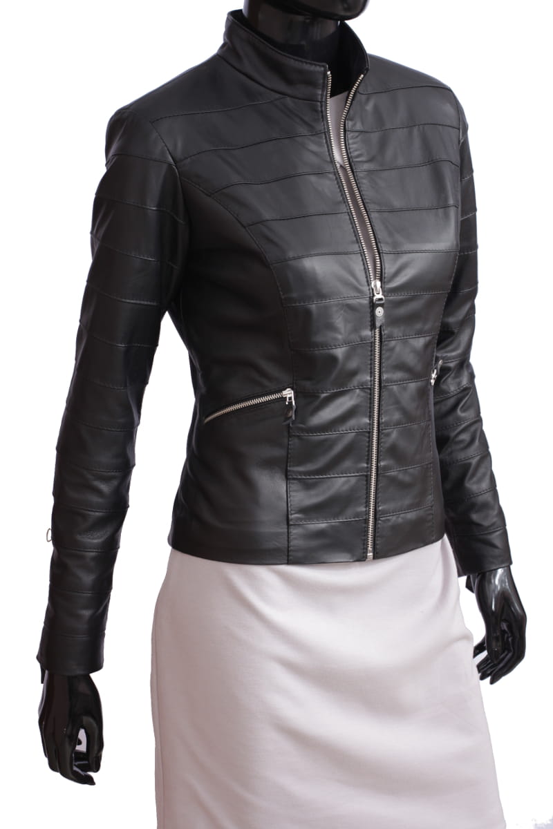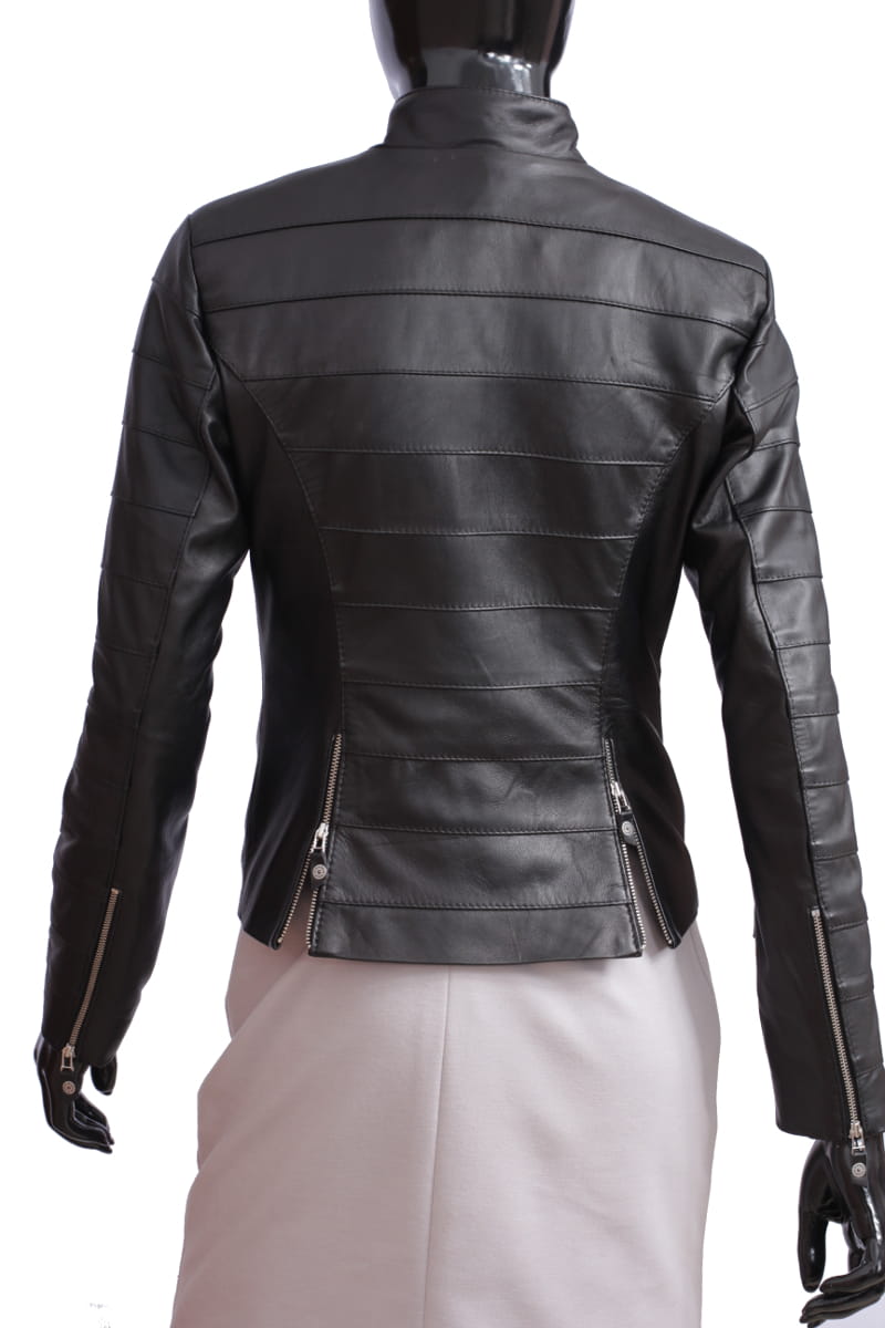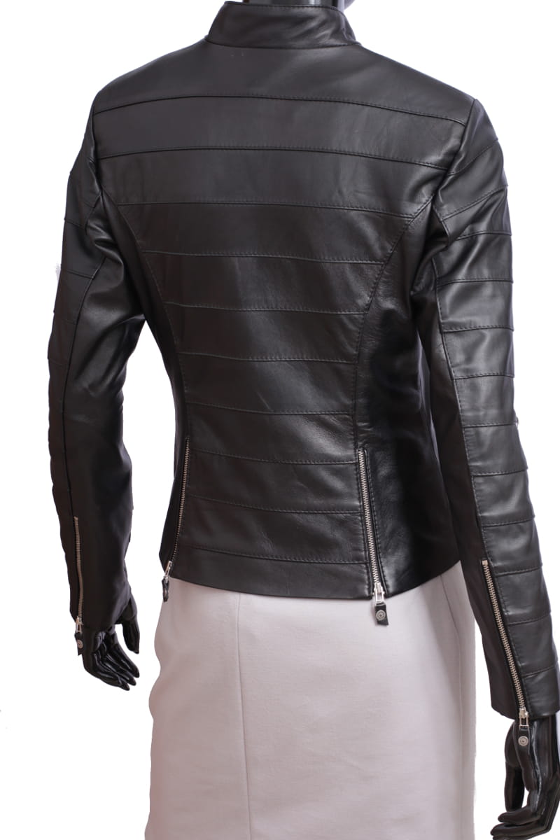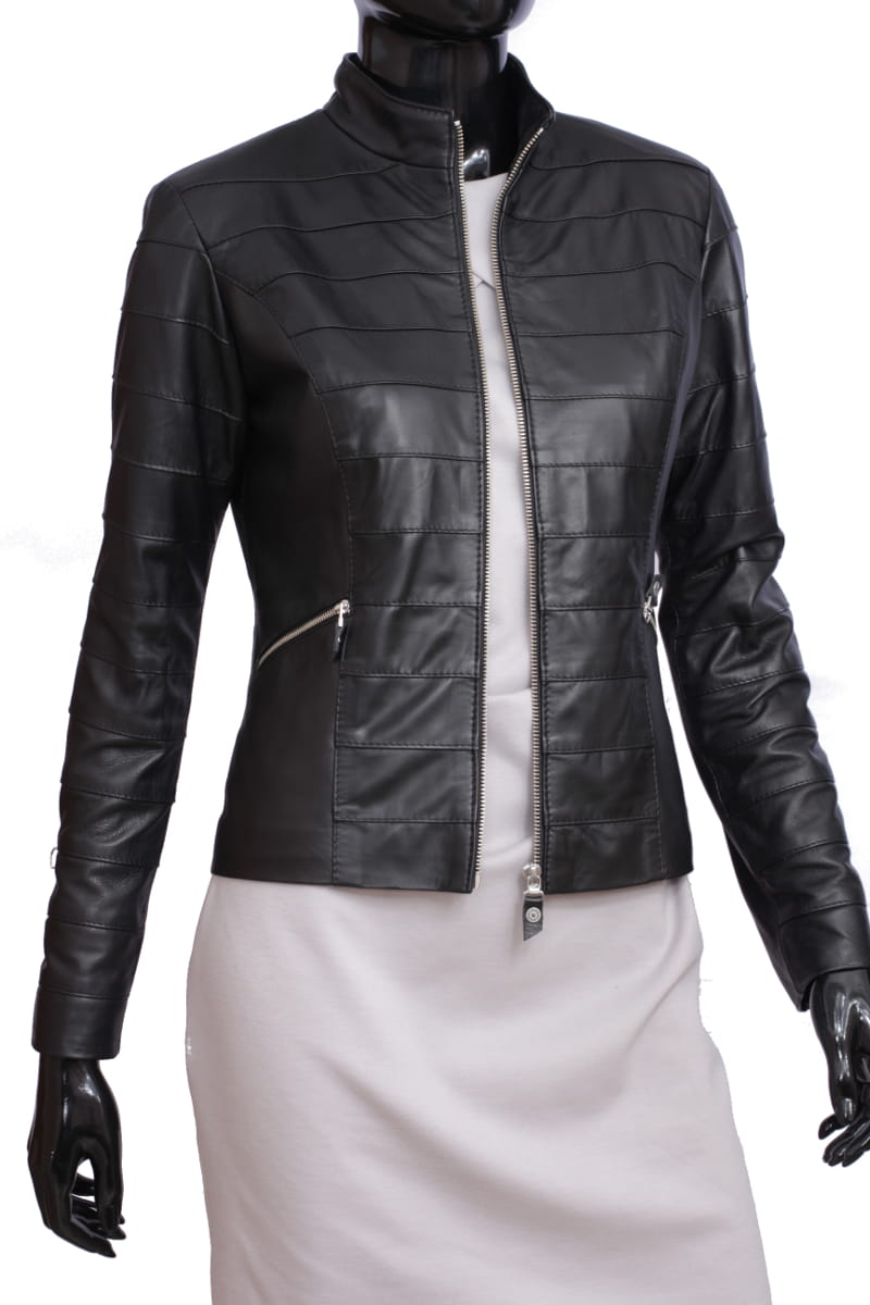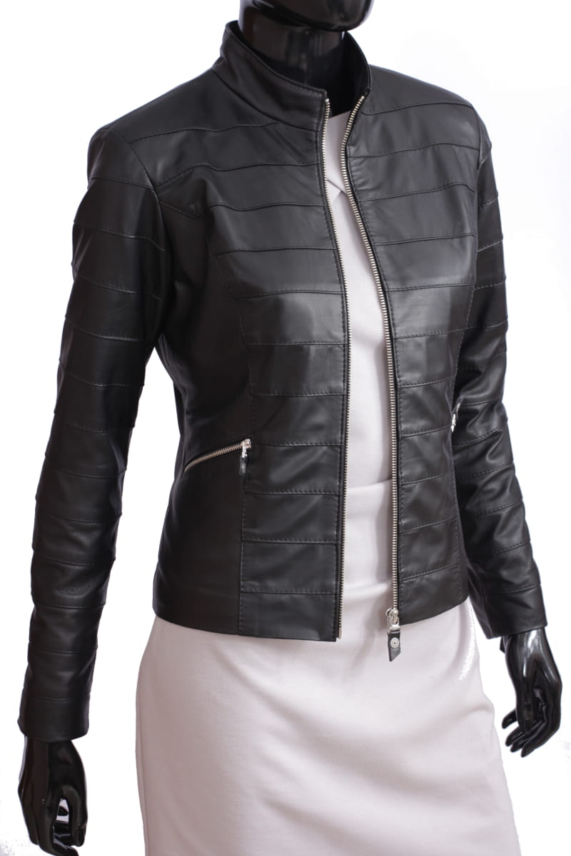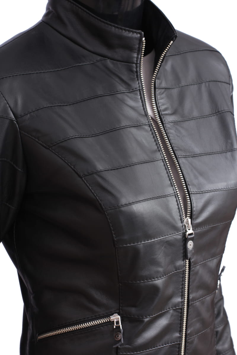 KRA450_2 - efektowna damska kurtka skórzana z czarnej skóry DORJAN