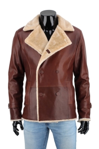KRO122 - Kurtka skórzana męska dwurzędowa z podszyciem z kożucha DORJAN