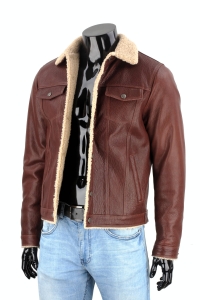 KTMK126 - Brązowa kurtka skórzana męska z kożuchem eko DORJAN