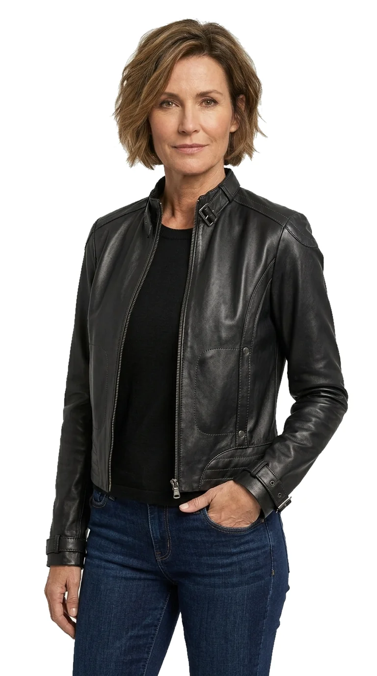 Kurtka skórzana damska biker z naturalnej skóry owczej DORJAN