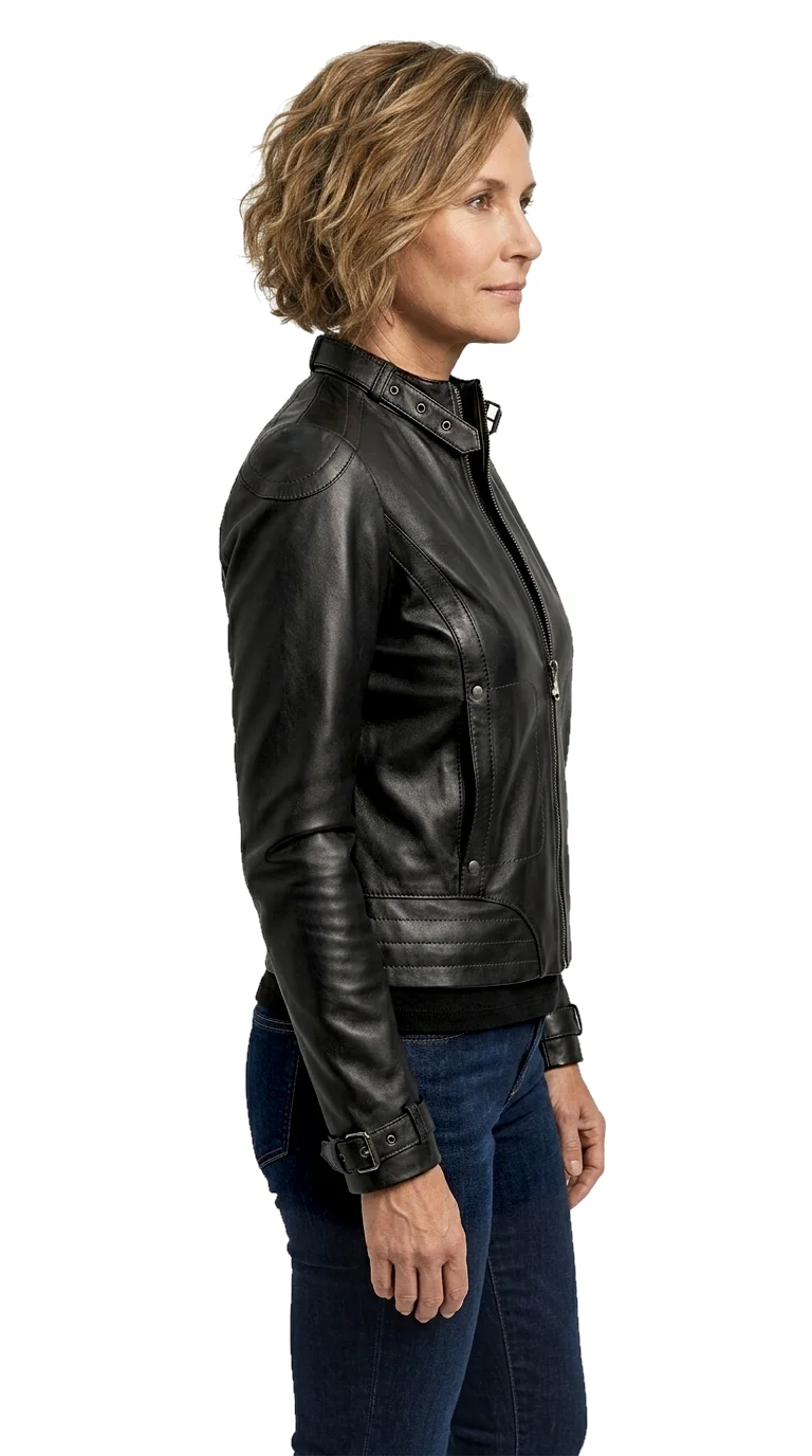 Model EWA450 firmy DORJAN to casualowa kurtka damska w stylu biker, wykonana z najwyższej jakości skóry owczej w klasycznej czerni. Prosty, elegancki fason został wzbogacony o subtelne, ale stylowe detale, takie jak krótka, dopasowana stójka i delikatne przeszycia wokół kieszeni. Lekko dopasowany krój podkreśla kobiecą sylwetkę, nadając całości lekkości i nowoczesnego charakteru. Połączenie minimalistycznego designu z klasyczną formą sprawia, że kurtka doskonale sprawdzi się zarówno w codziennych stylizacjach, jak i jako element garderoby do pracy czy na spotkania ze znajomymi. Model EWA450 to idealny wybór dla kobiet ceniących połączenie wygody, klasyki i nowoczesnego stylu w jednym ponadczasowym projekcie.